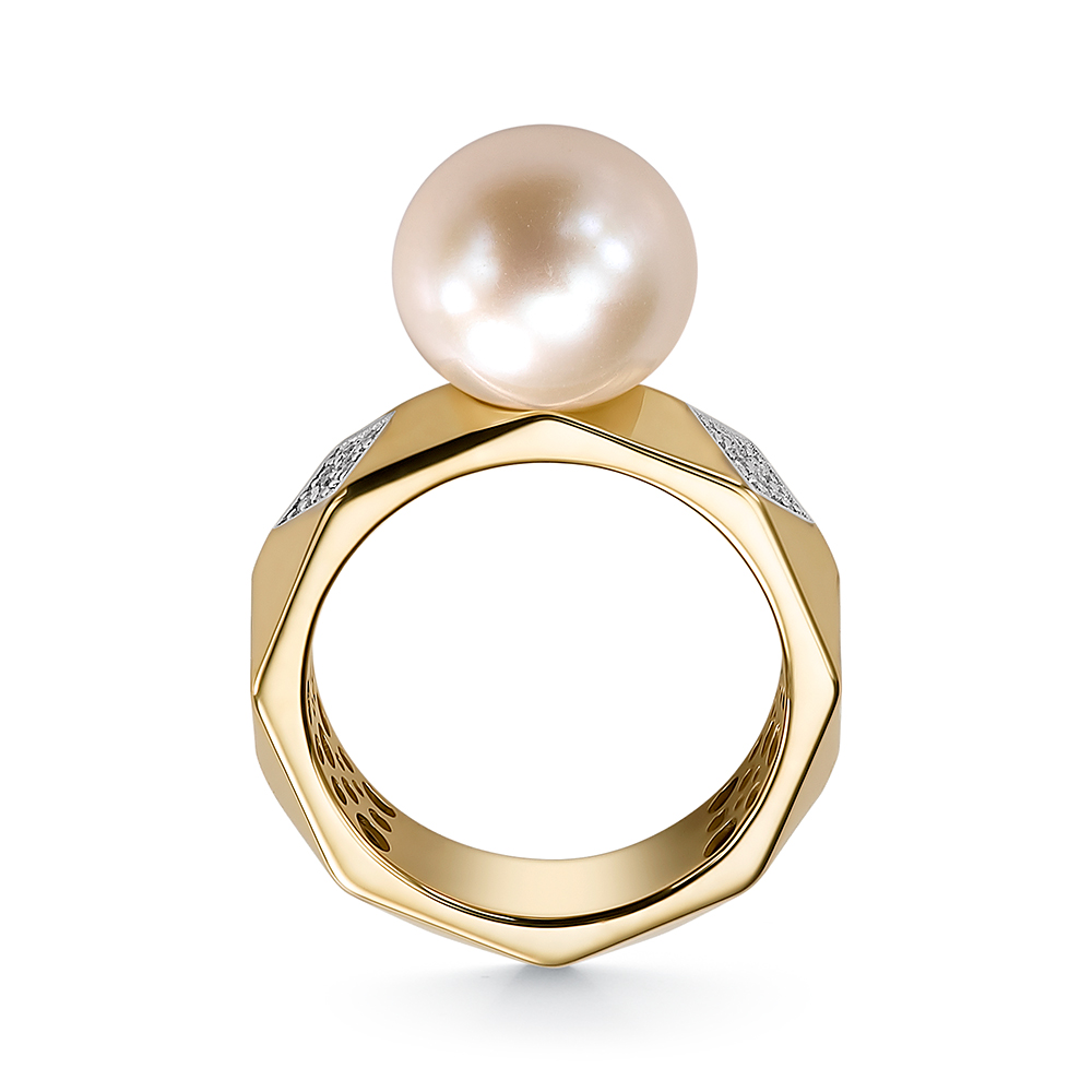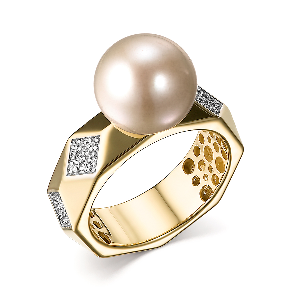 Кольцо с жемчугом и бриллиантами из желтого золота 585 пробы арт. 41009БрYT1D11