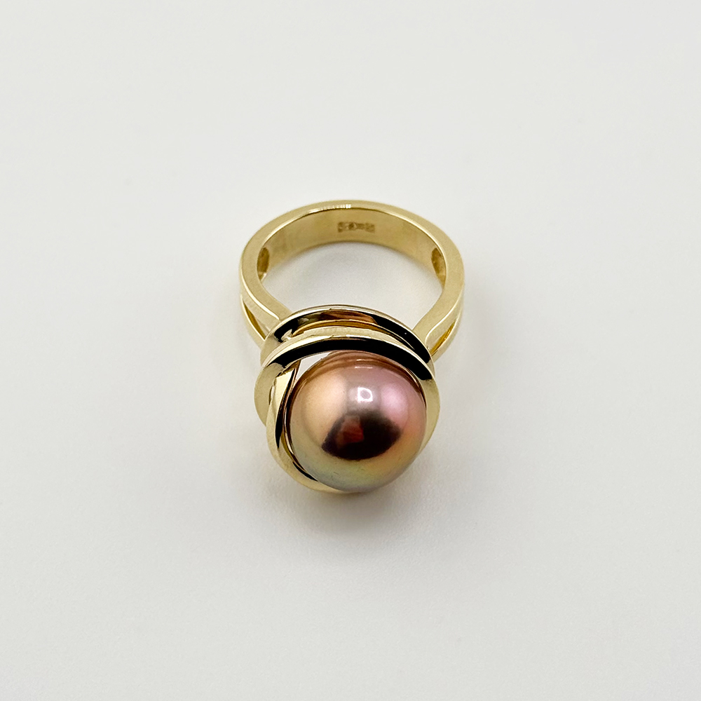 Кольцо с жемчугом из желтого золота 585 пробы арт. 41055YEd3D12