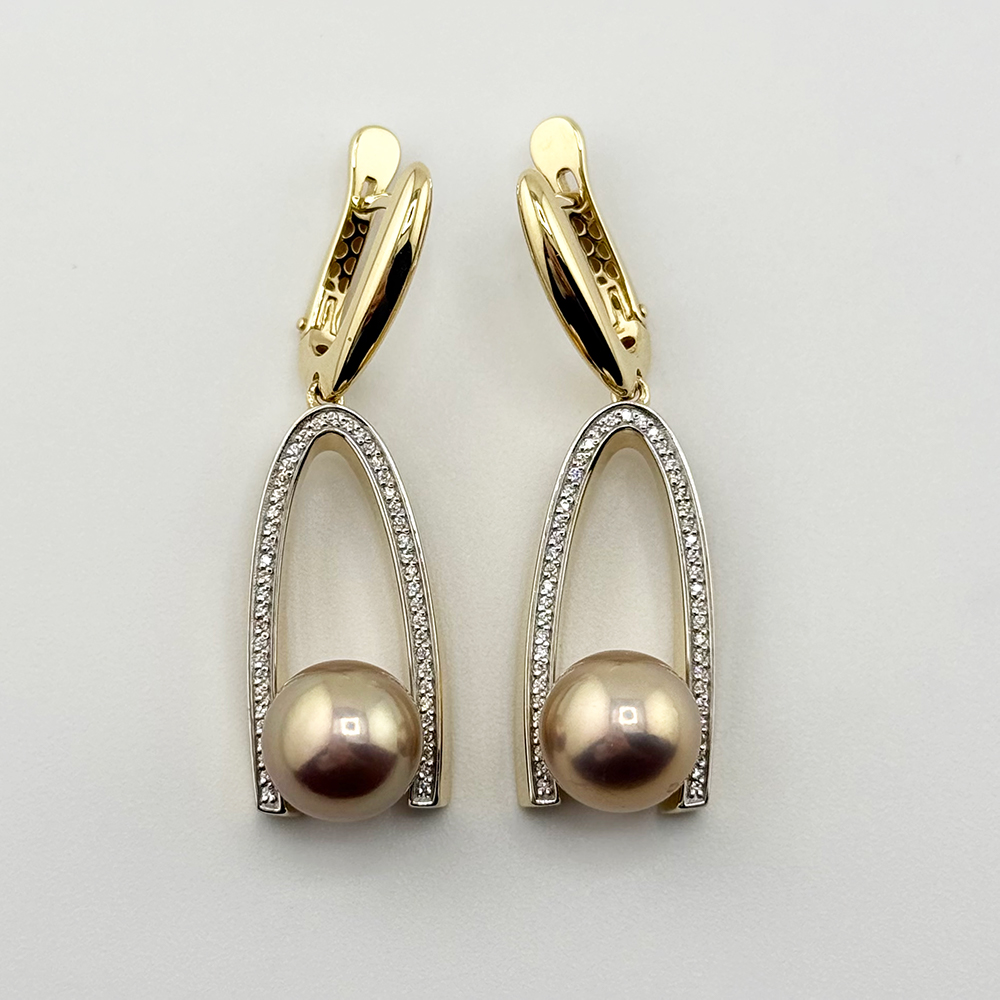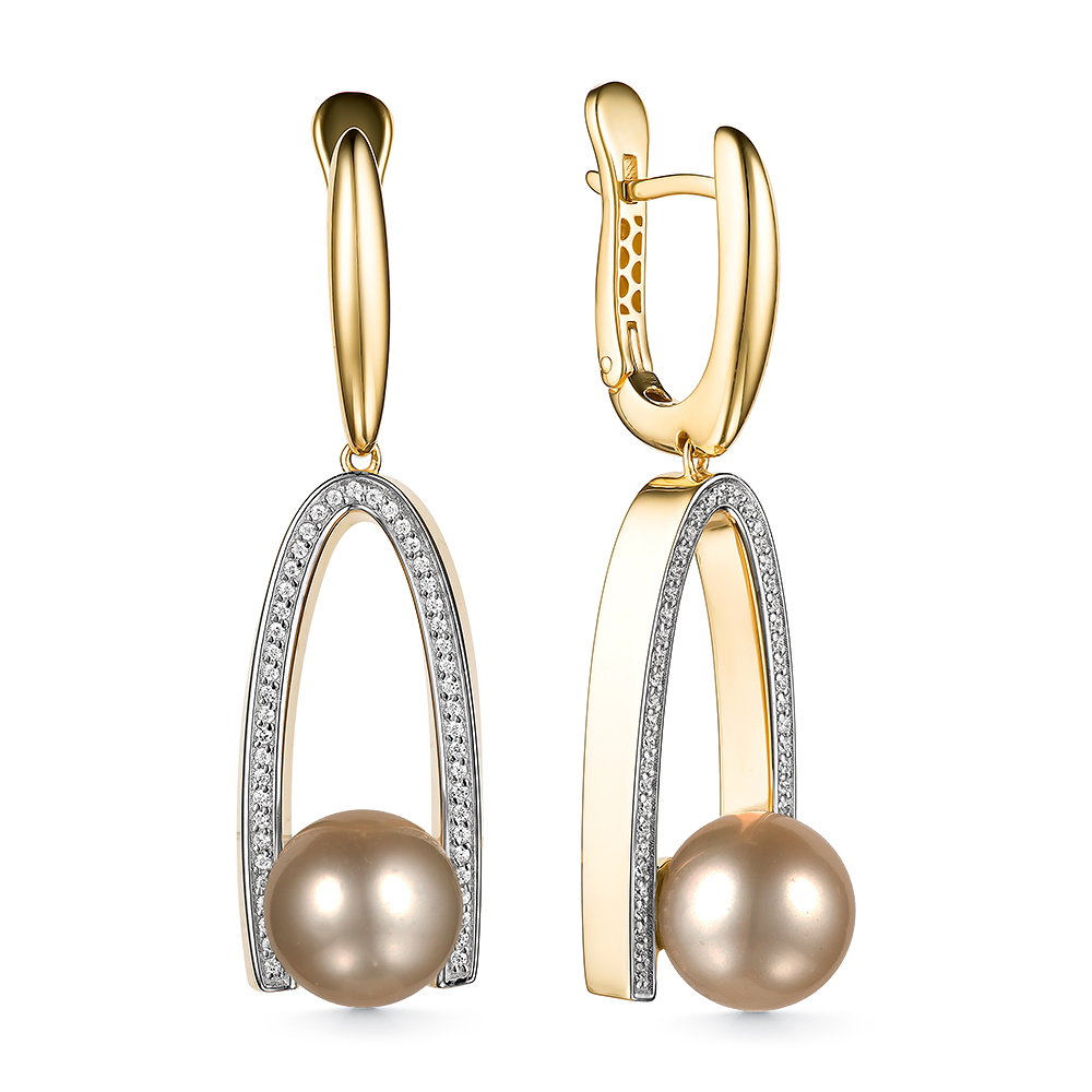 Серьги с жемчугом и бриллиантами из золота 585 пробы арт. 42017БрYEd3D11