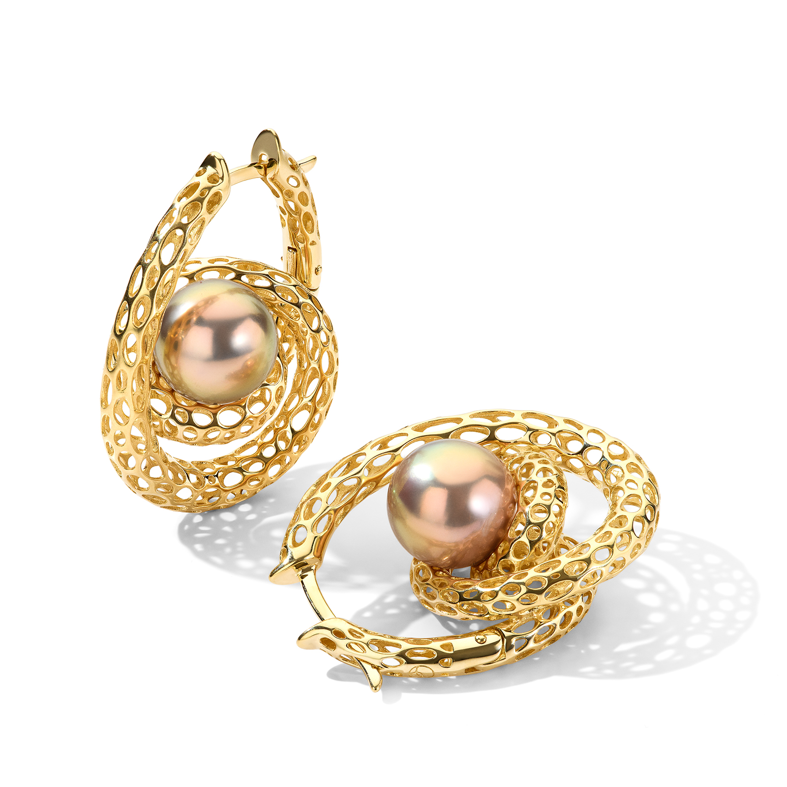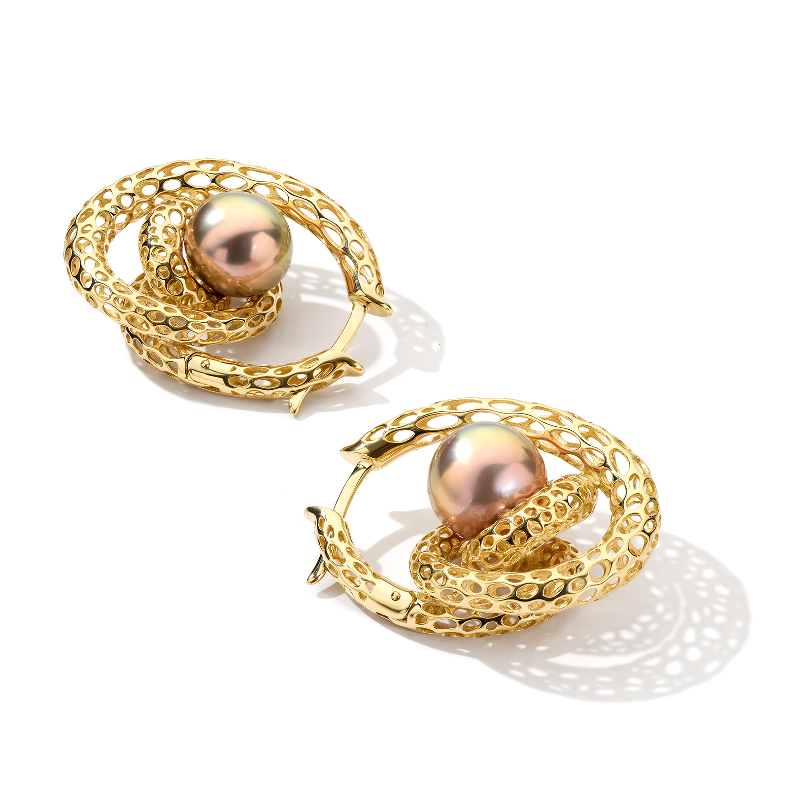 Серьги с жемчугом из желтого золота 585 пробы арт. 42022YEd3D11