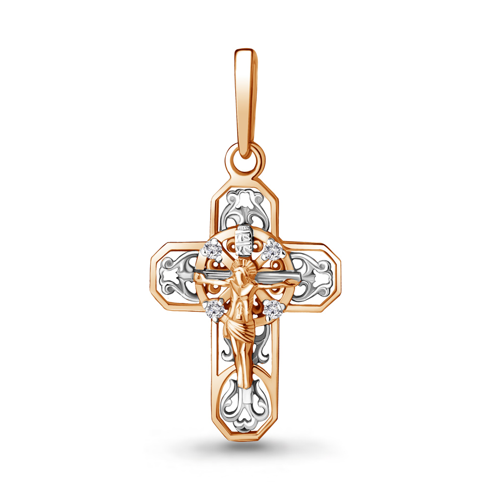 Крест православный с бриллиантами из золота 585 пробы арт. 922710к.1