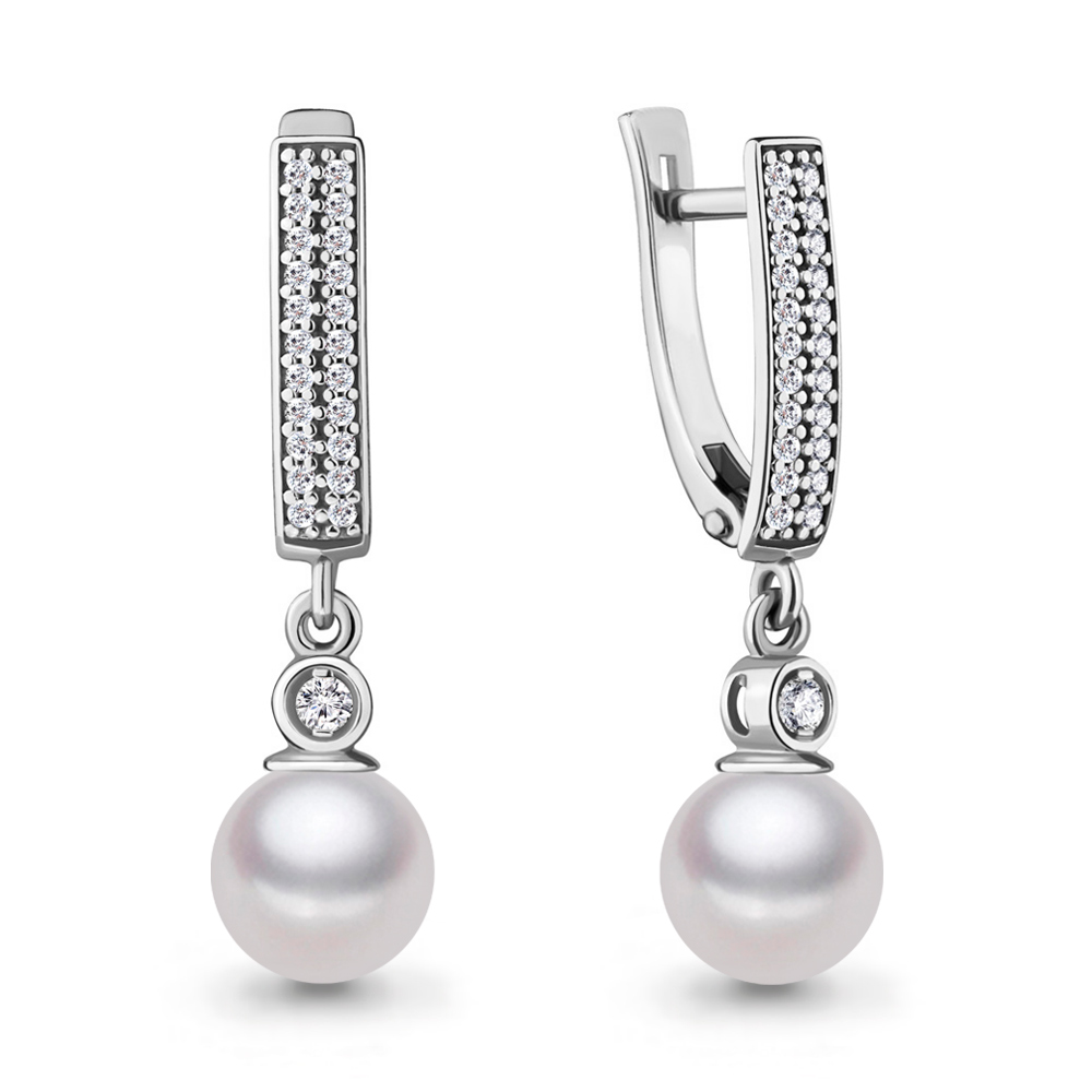 Серьги с жемчугом и бриллиантами из белого золота 585 пробы арт. 940539.2