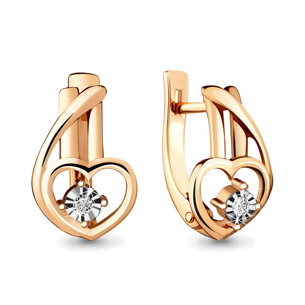 Серьги "Сердца" с бриллиантами из золота 585 пробы арт. 941784к.1