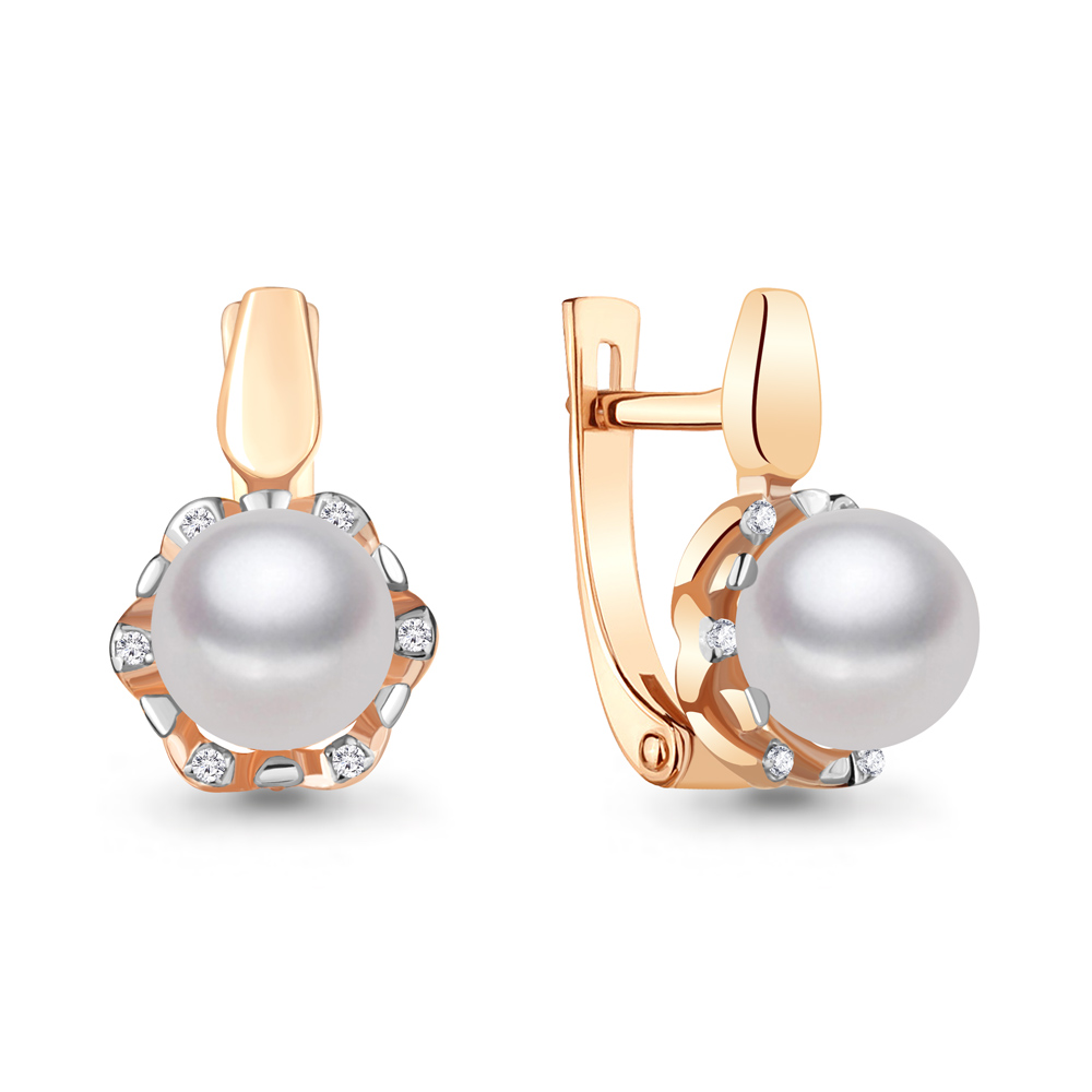 Серьги с жемчугом и бриллиантами из золота 585 пробы арт. 942595к.1