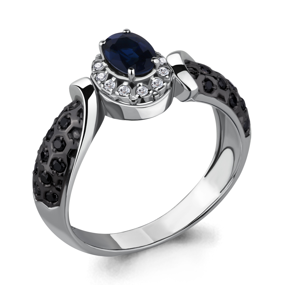 Кольцо с сапфиром и бриллиантами из белого золота 585 пробы арт. 963613Ч.2