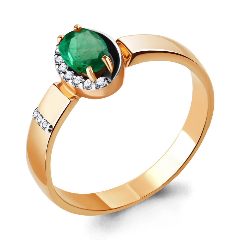 Кольцо с изумрудом и бриллиантами из золота 585 пробы арт. 963628к.1