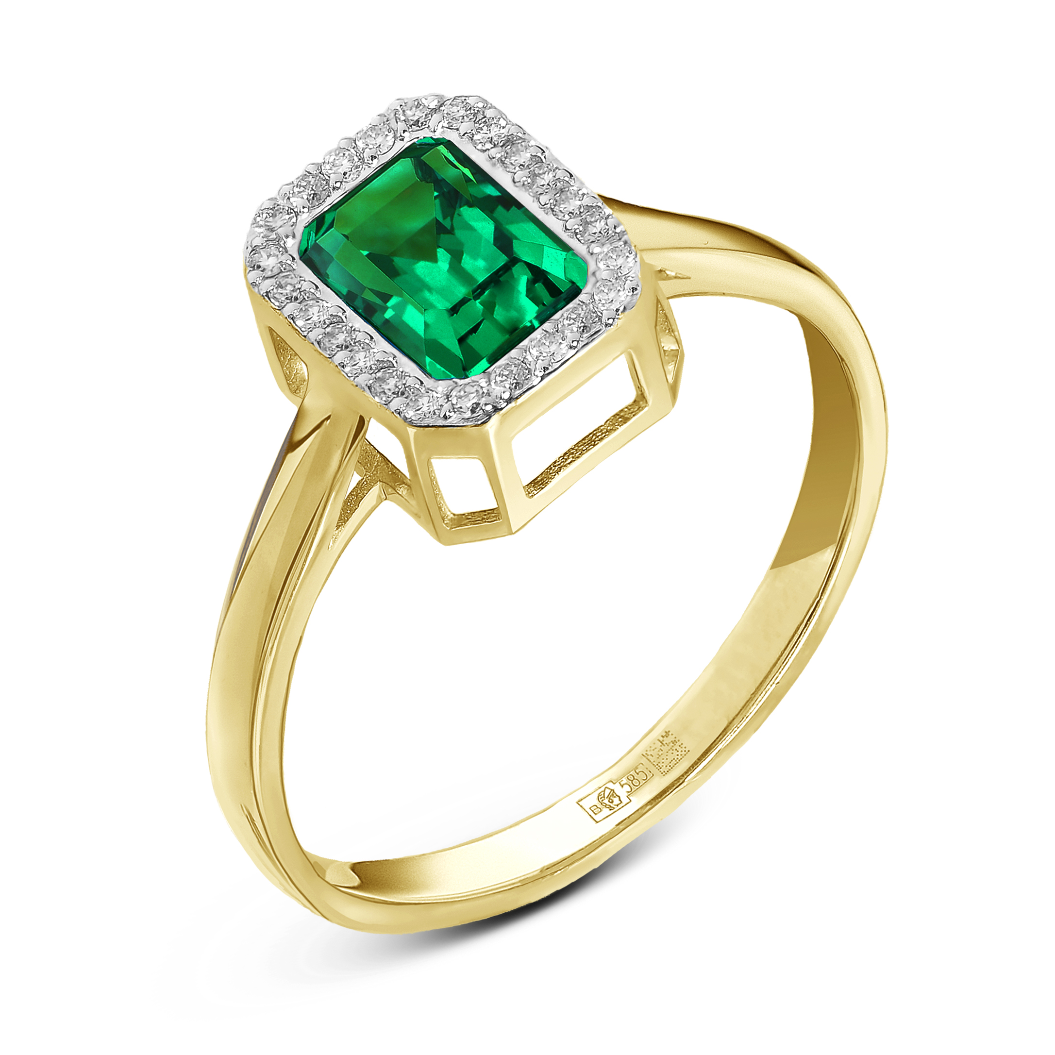Кольцо с изумрудом и бриллиантами из золота 585 пробы арт. 01-P0603-05-110-01-01