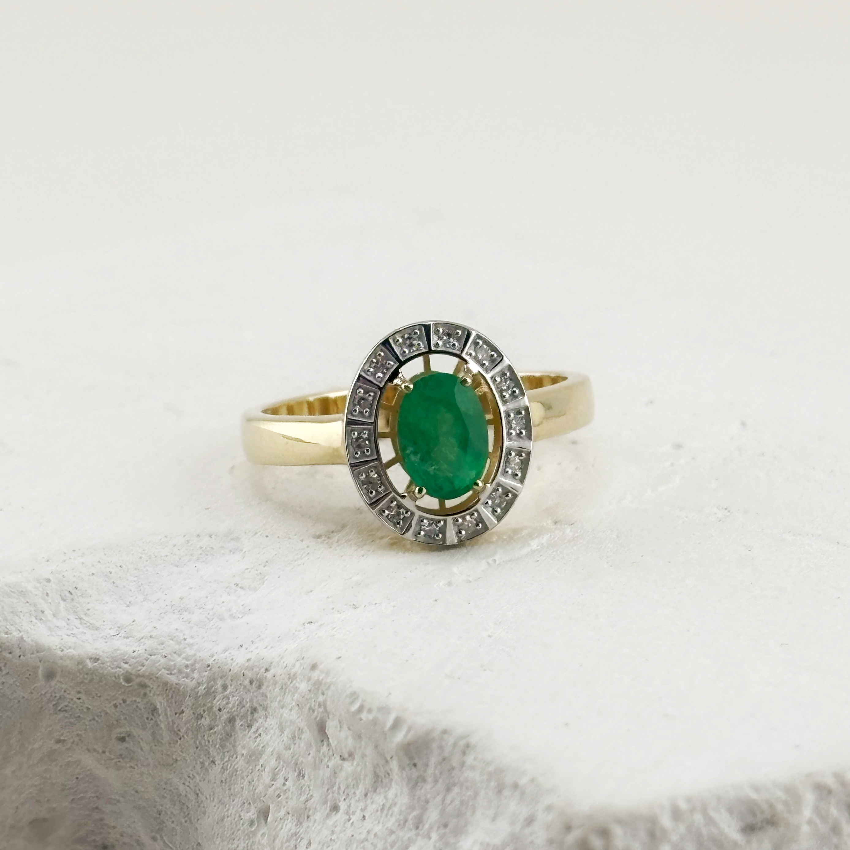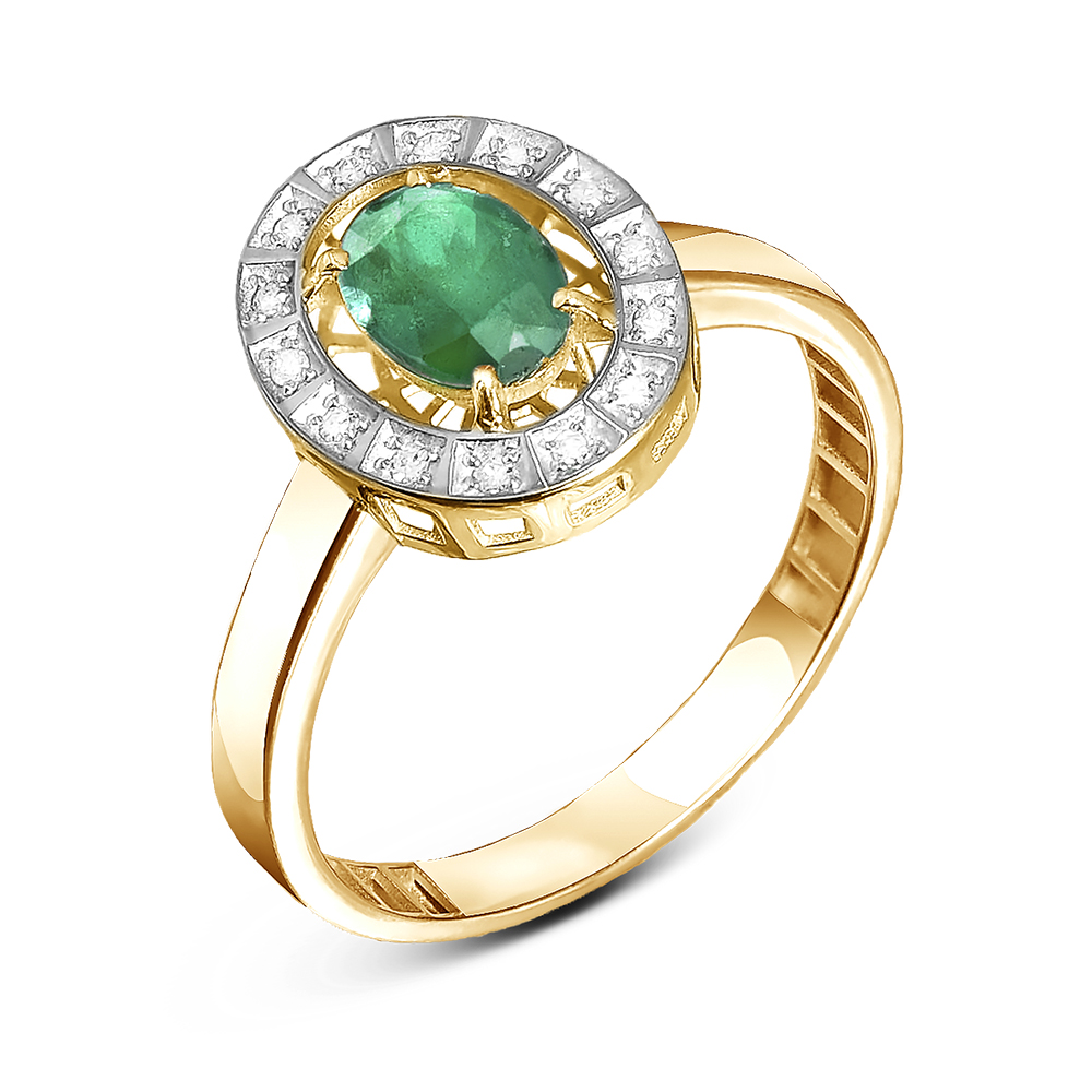Кольцо с изумрудом и бриллиантами из золота 585 пробы арт. 01-P0690-05-110-07-01