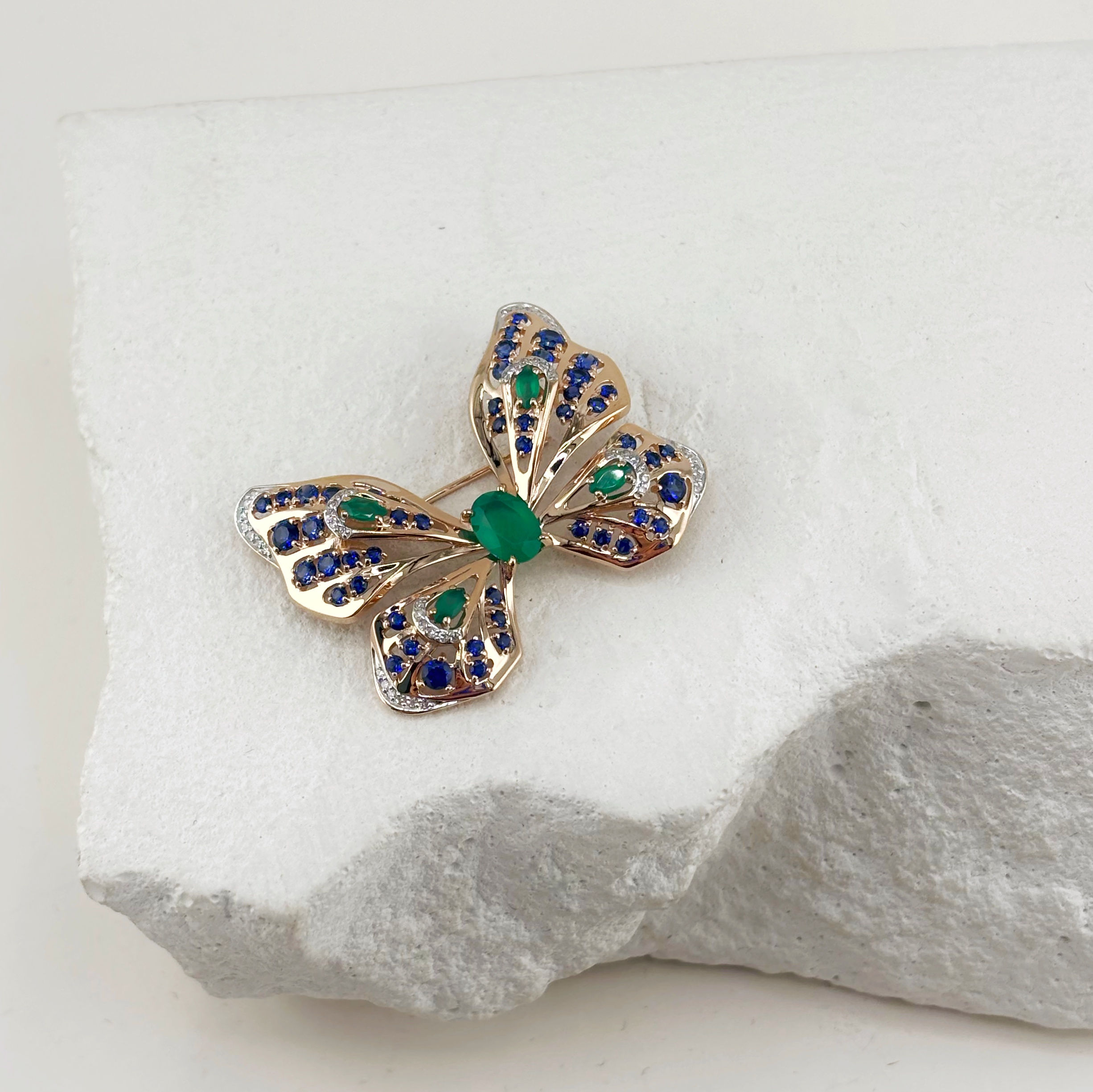 Брошь с агатами, сапфирами и бриллиантами из золота 585 пробы арт. 04-P0698-01-379-01-01