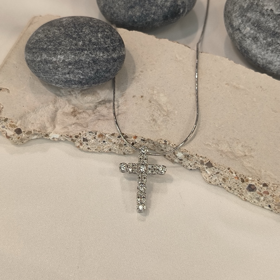Декоративный крест с бриллиантами из белого золота 585 пробы арт. 08-00141-03-001-01-03