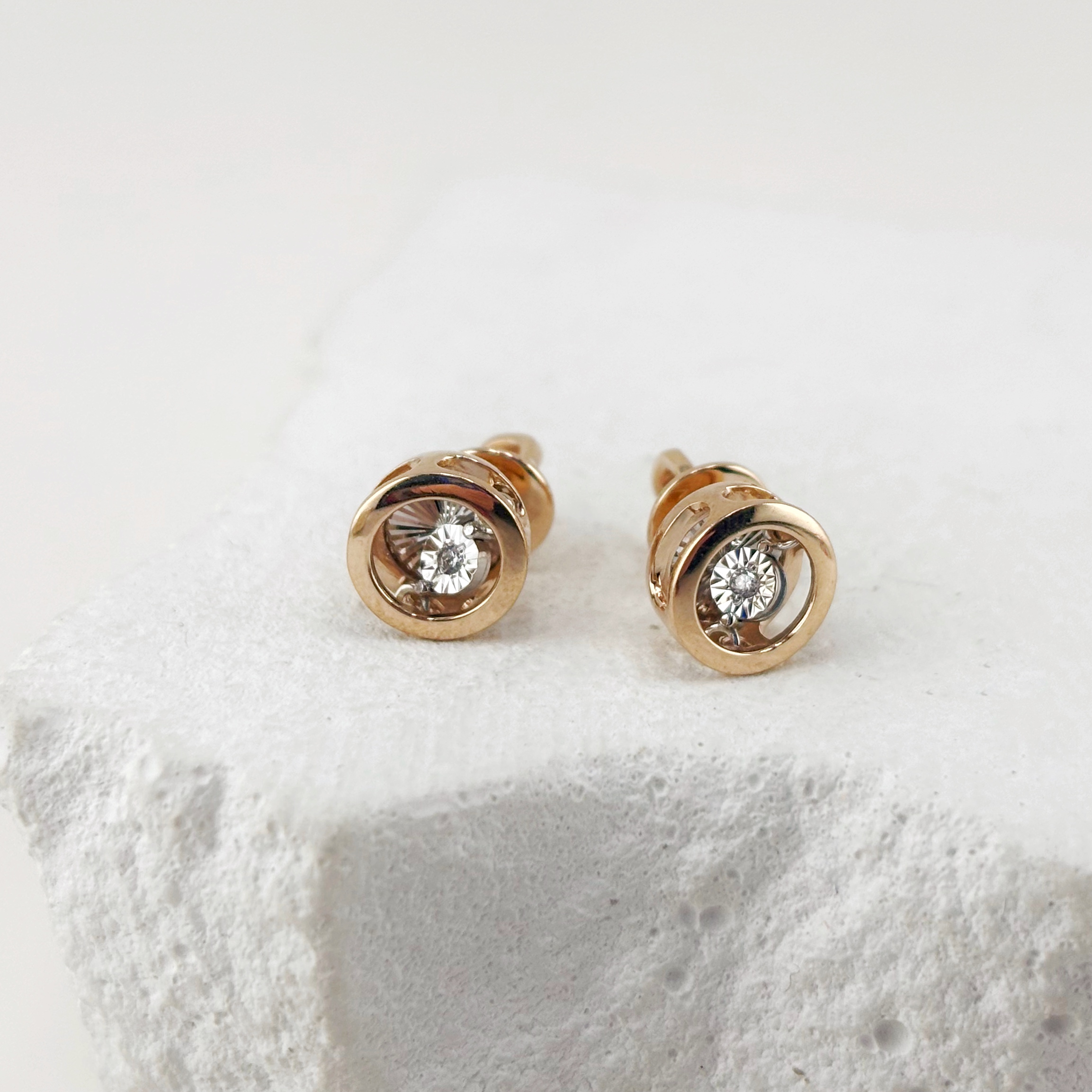 Пуссеты с танцующими бриллиантами из золота 585 пробы арт. 09-02996-02-001-02-01