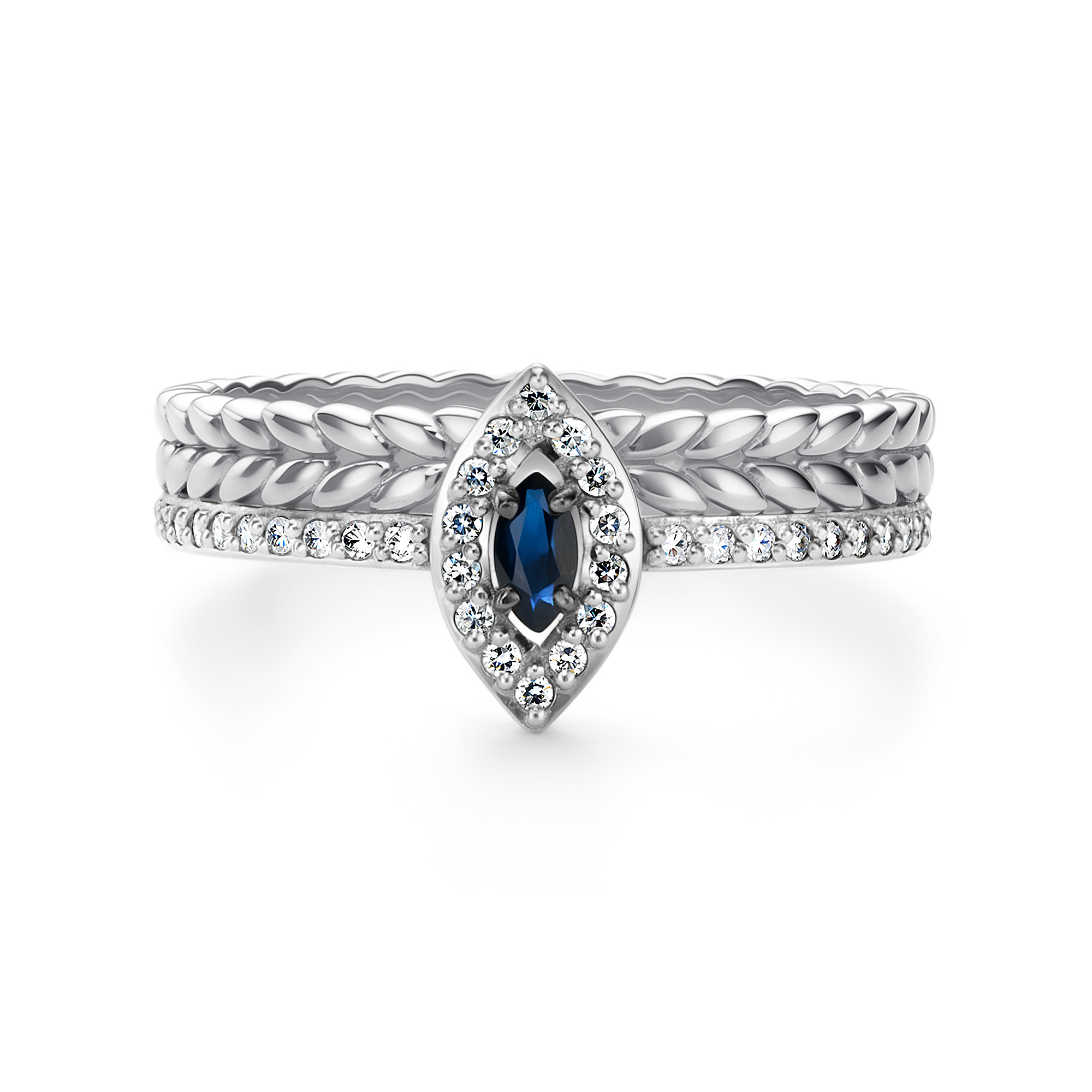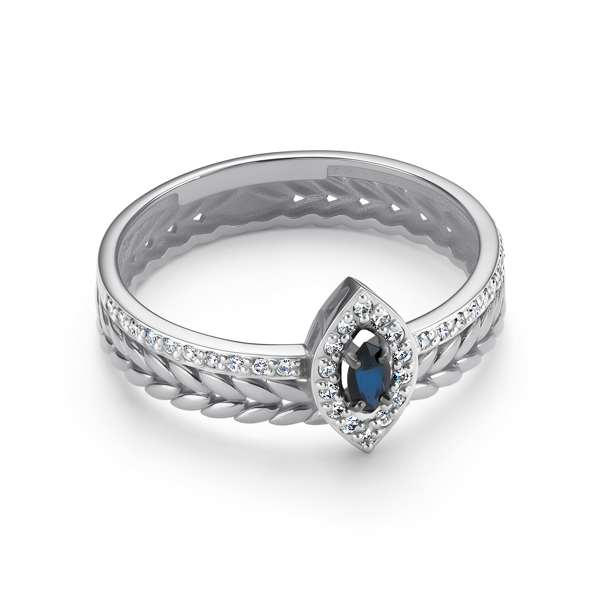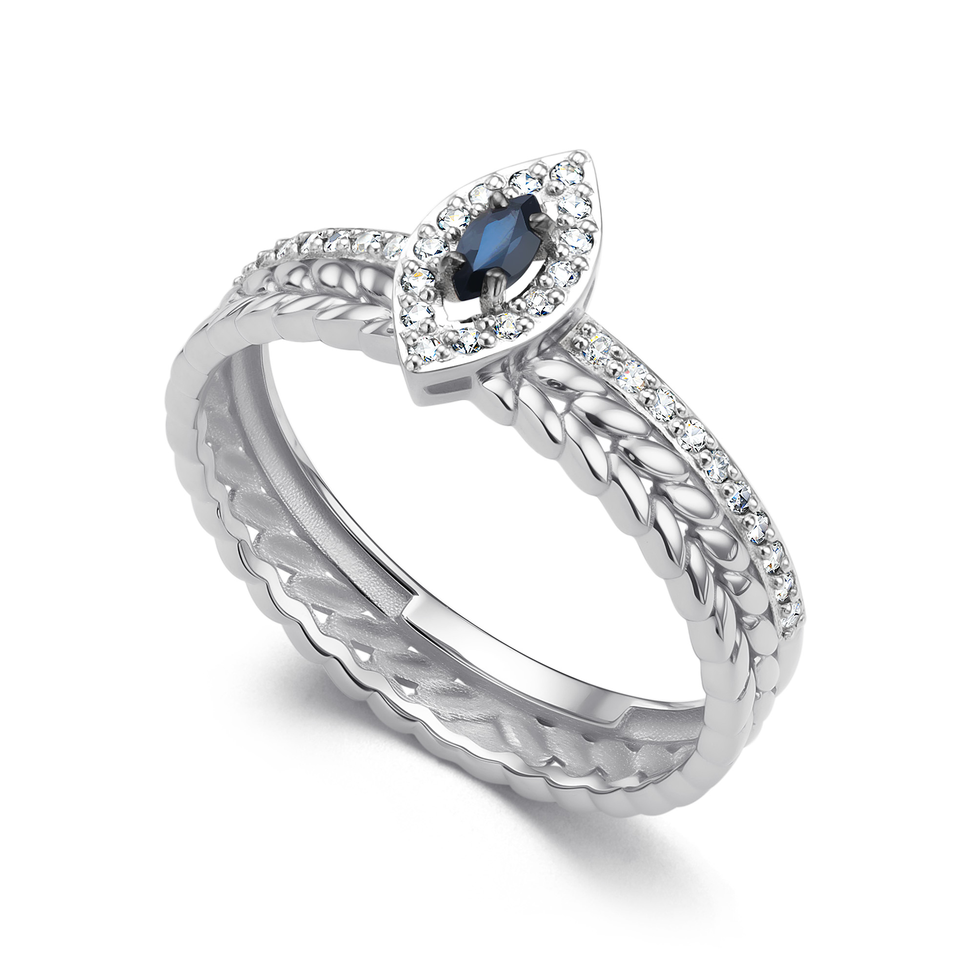 Кольцо с сапфиром и бриллиантами из белого золота 585 пробы арт. 14369-202