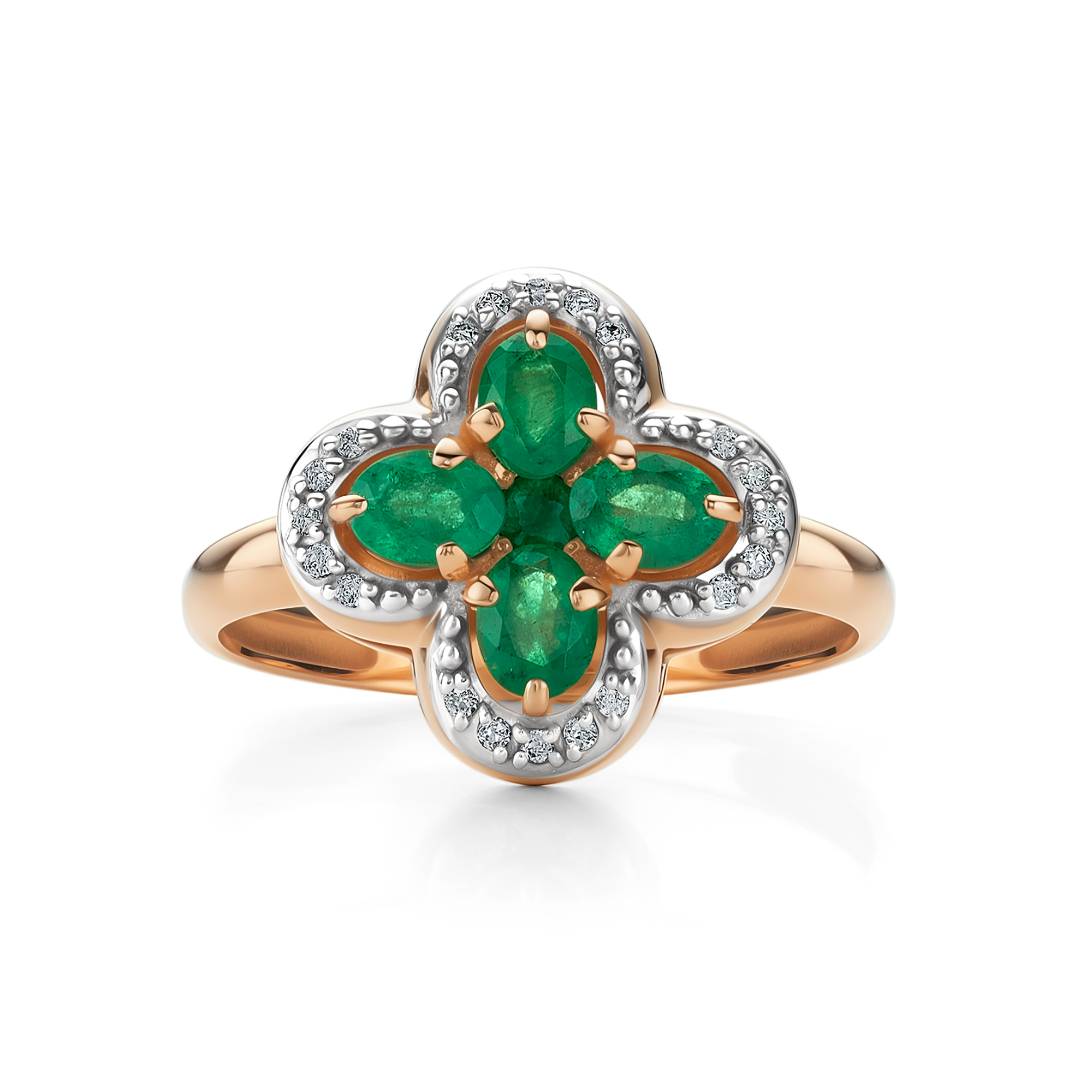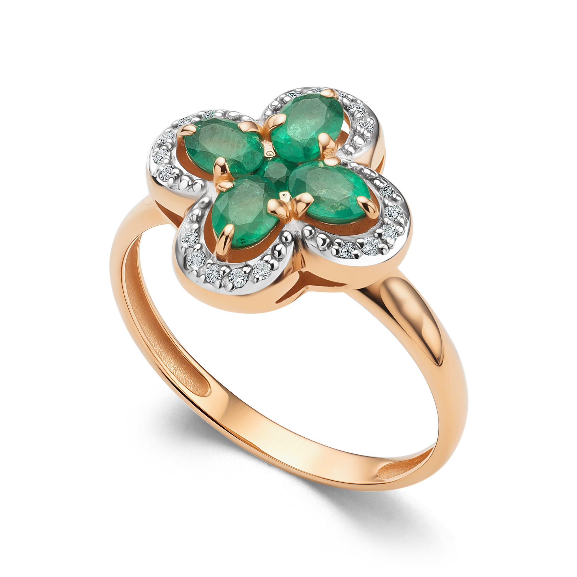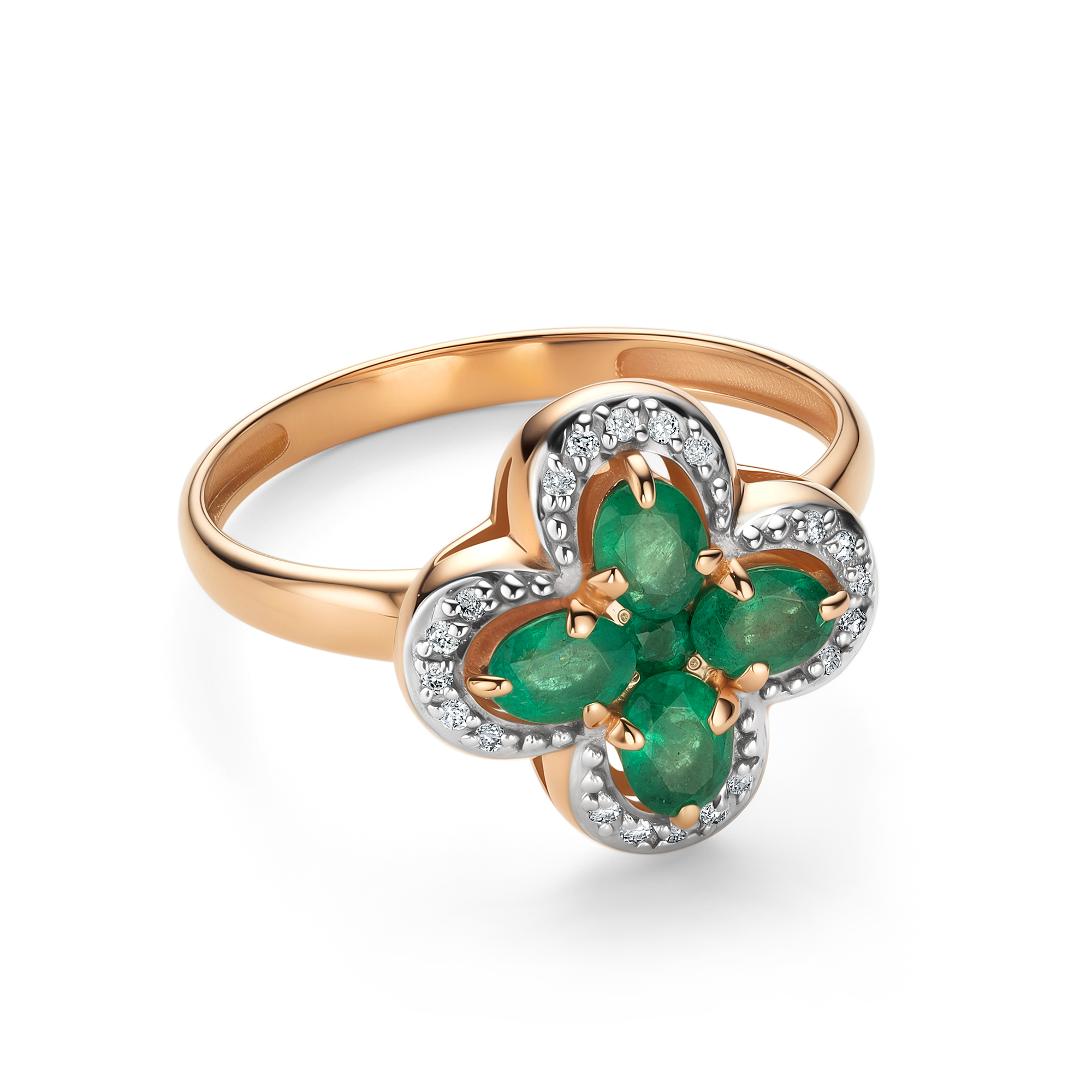 Кольцо "Клевер" с изумрудами и бриллиантами из золота 585 пробы арт. 16141-101