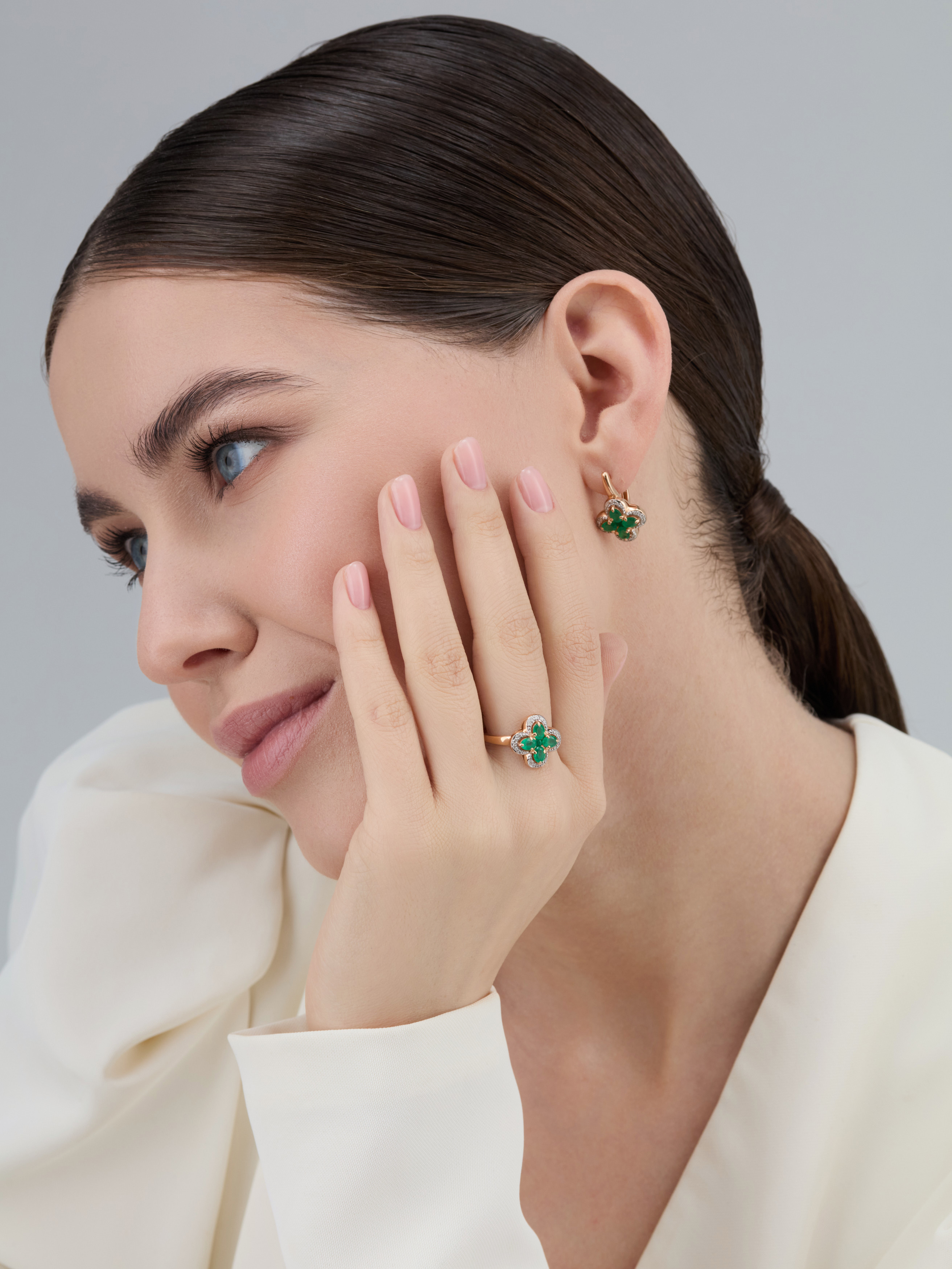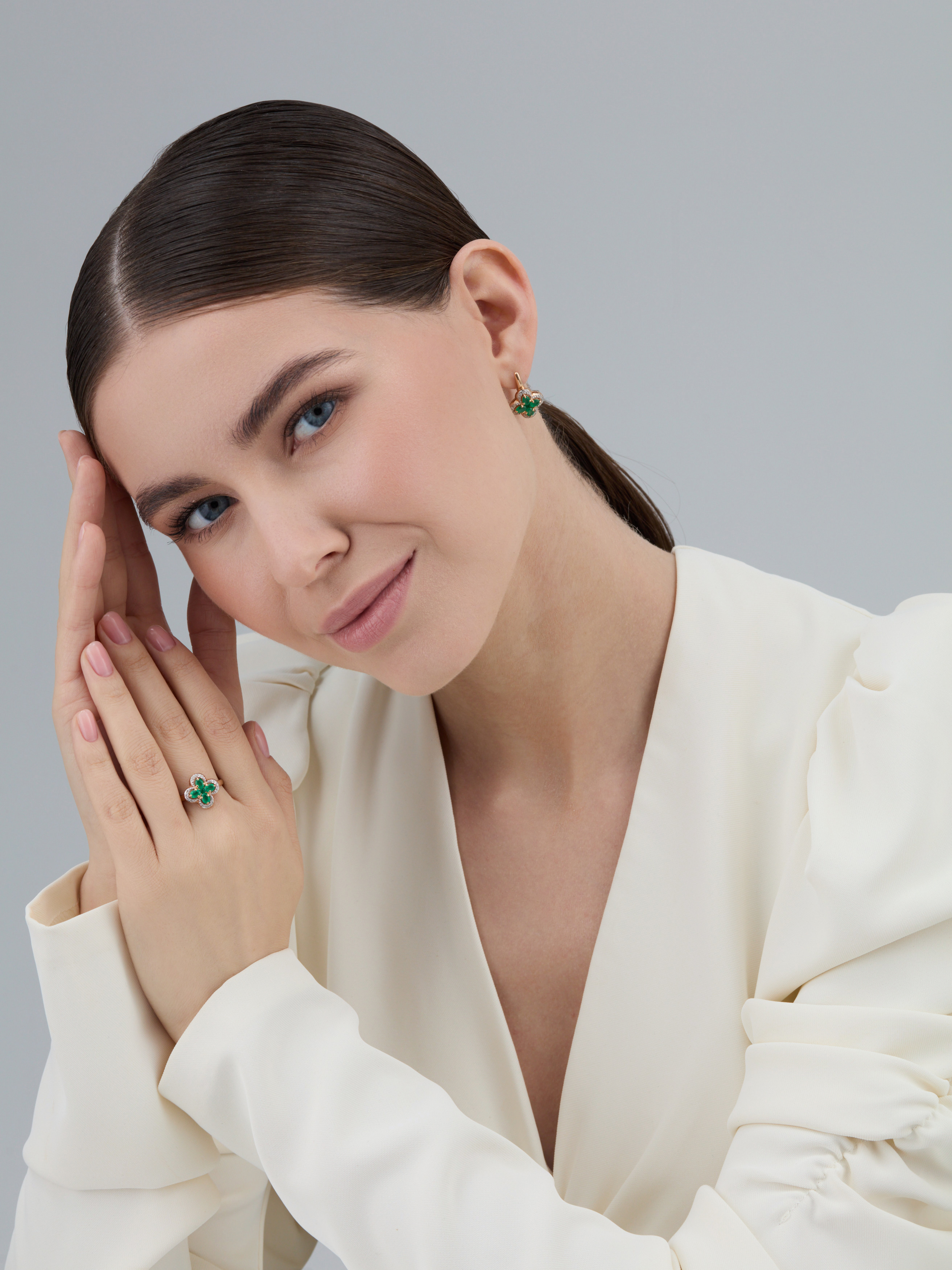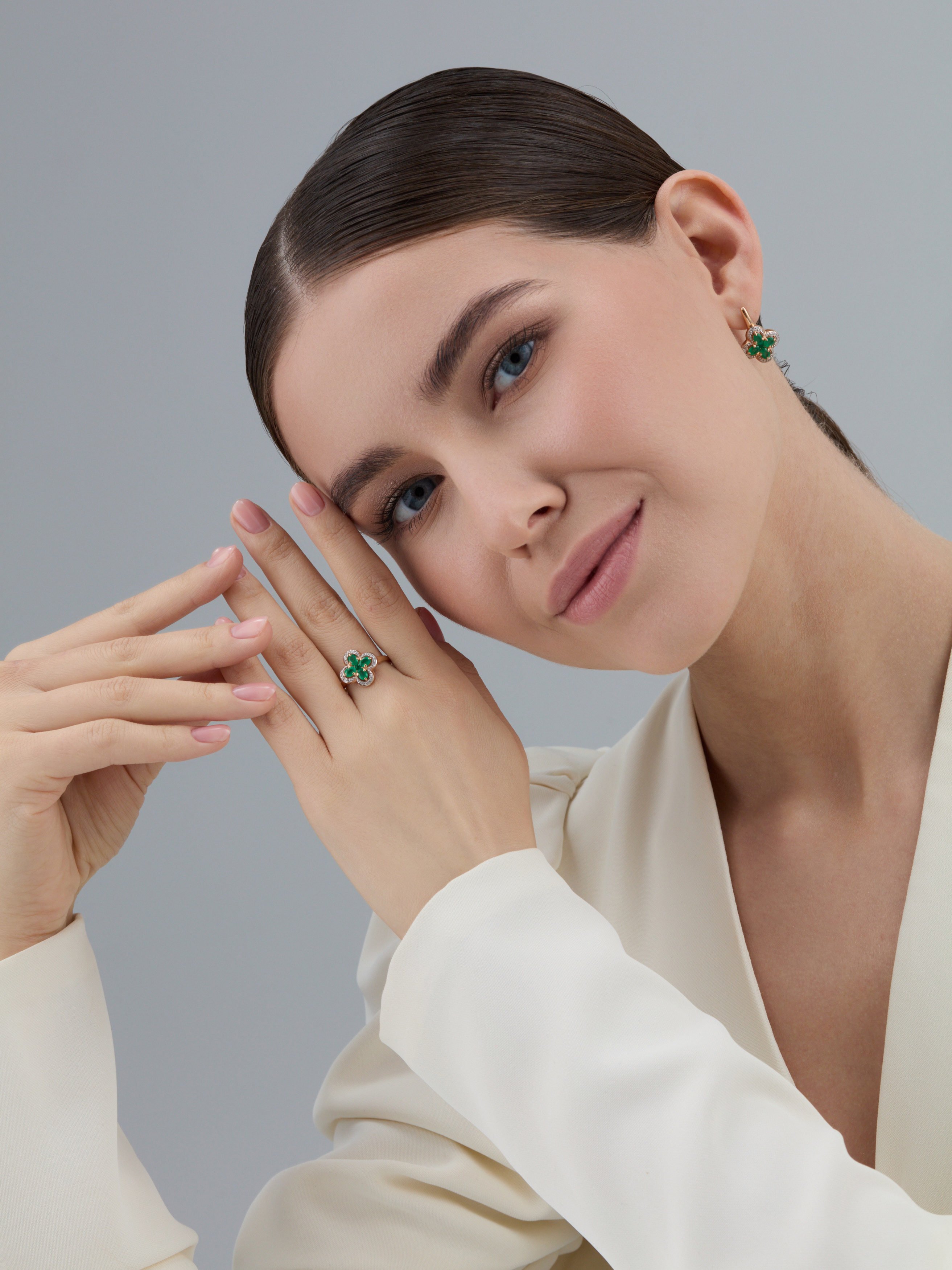 Кольцо "Клевер" с изумрудами и бриллиантами из золота 585 пробы арт. 16141-101