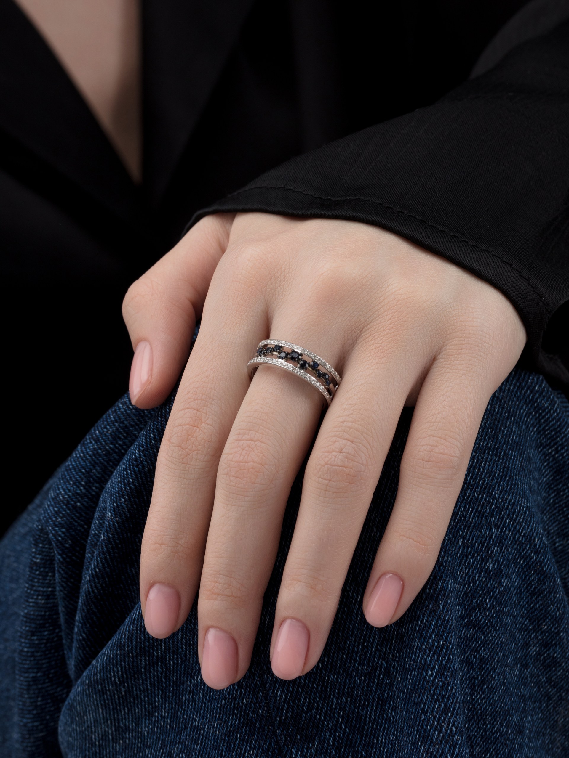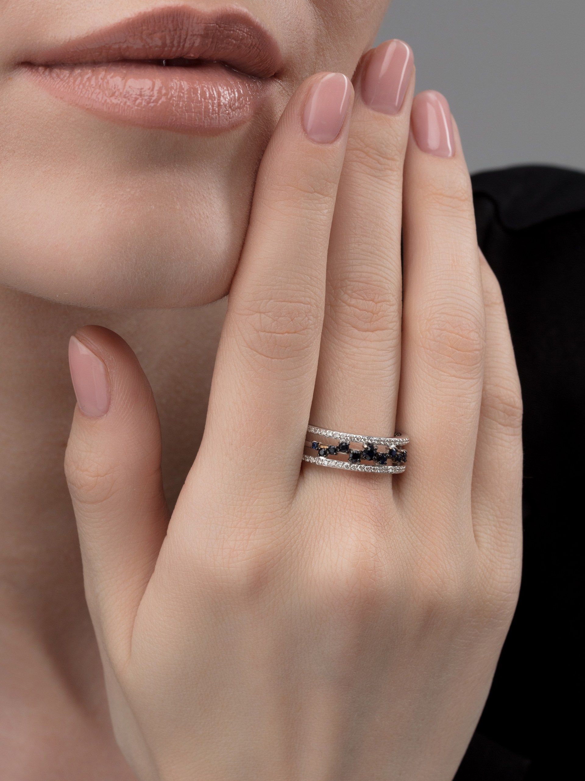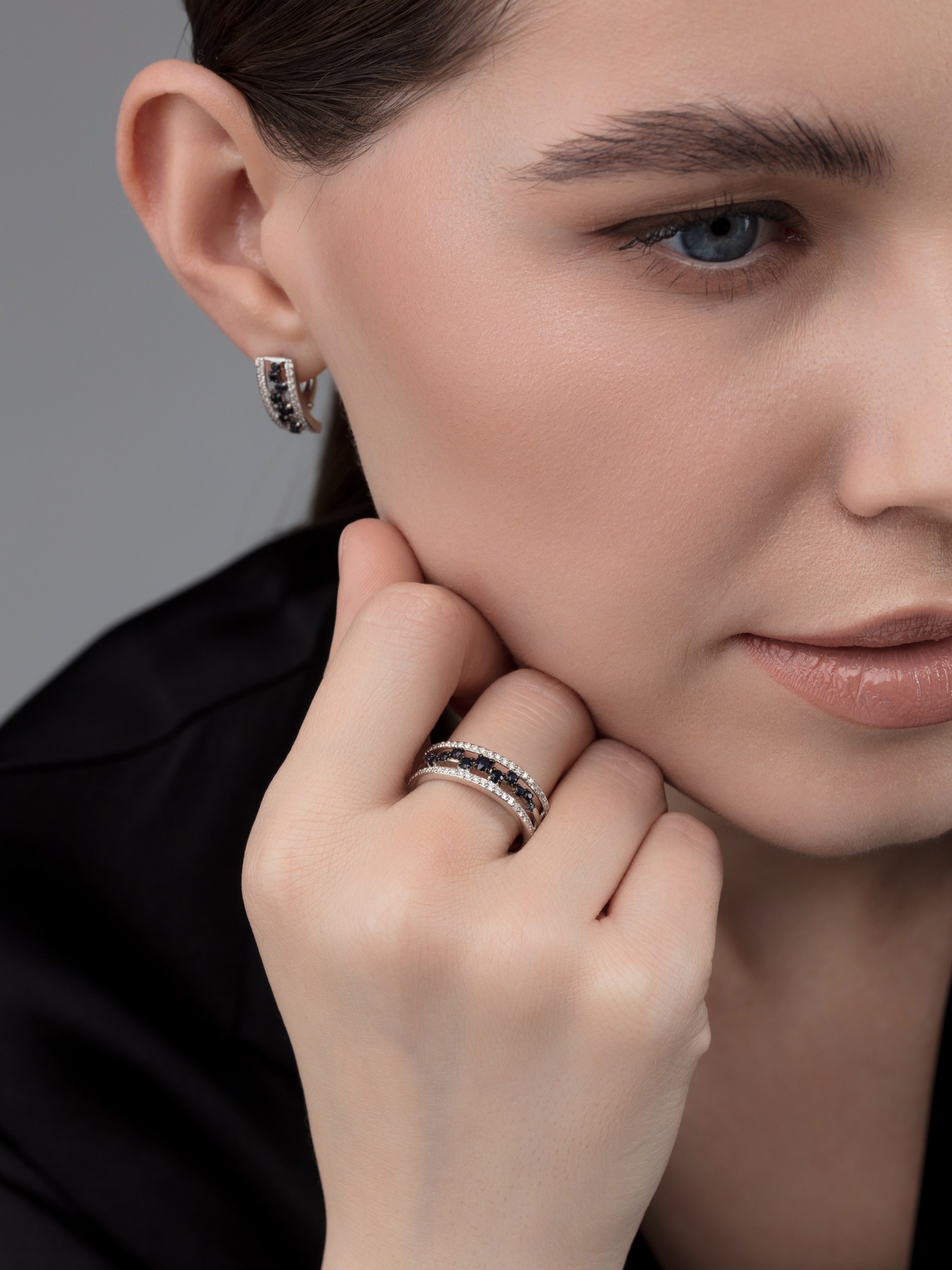 Кольцо с сапфирами и бриллиантами из белого золота 585 пробы арт. 16189-202
