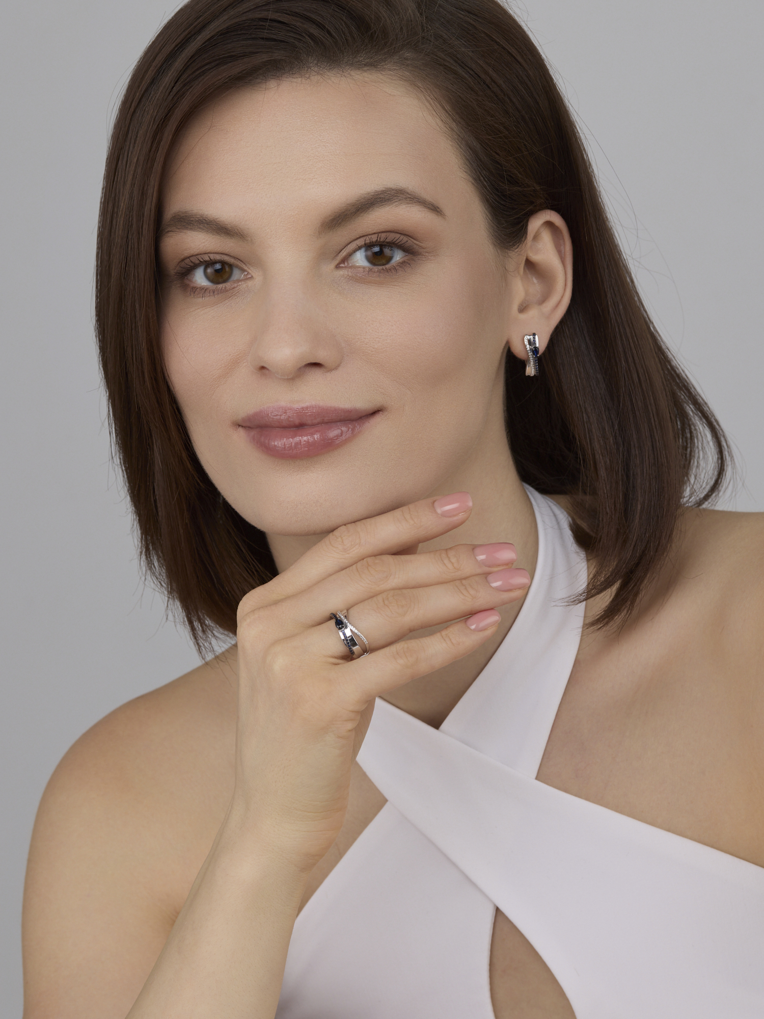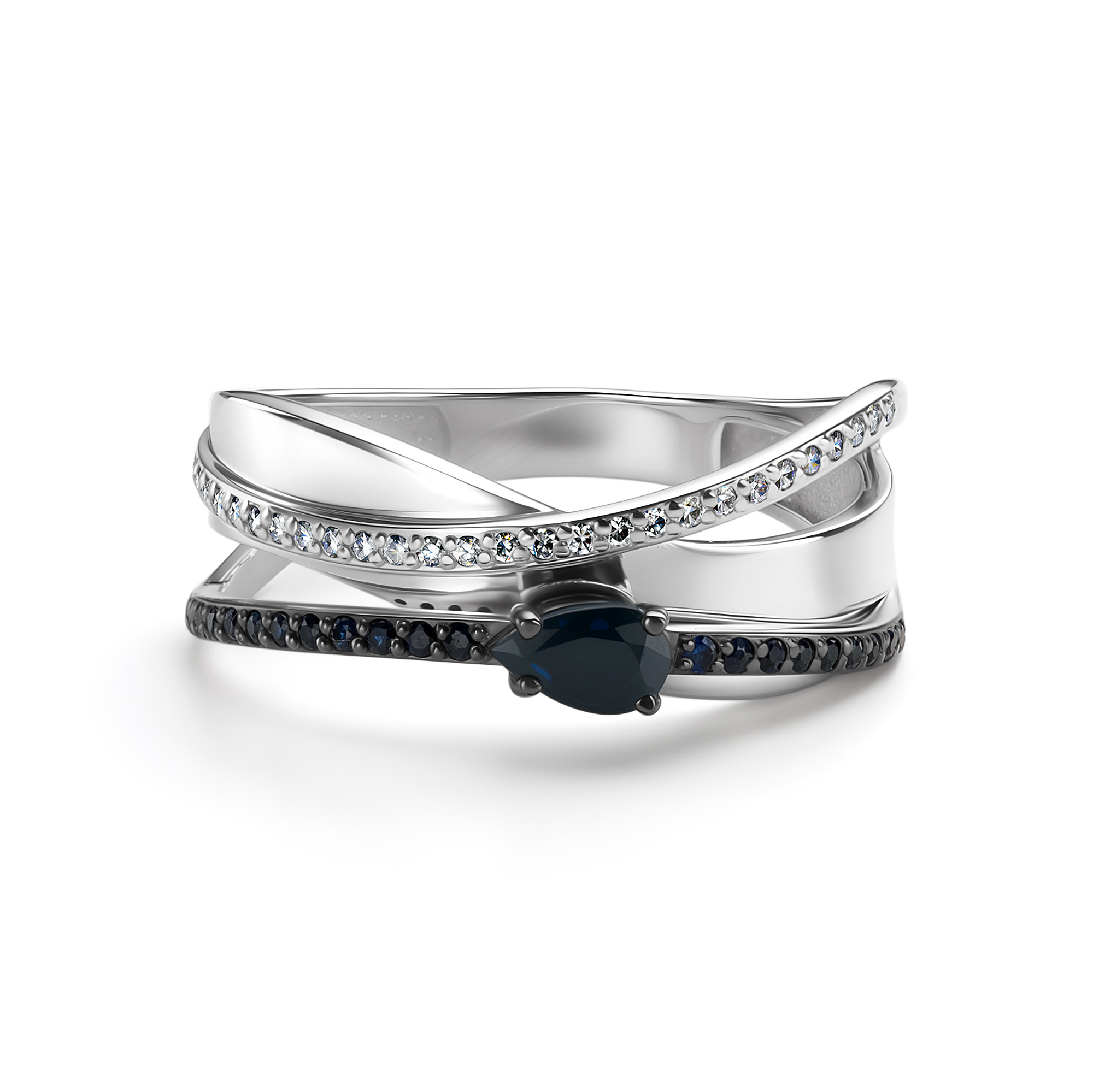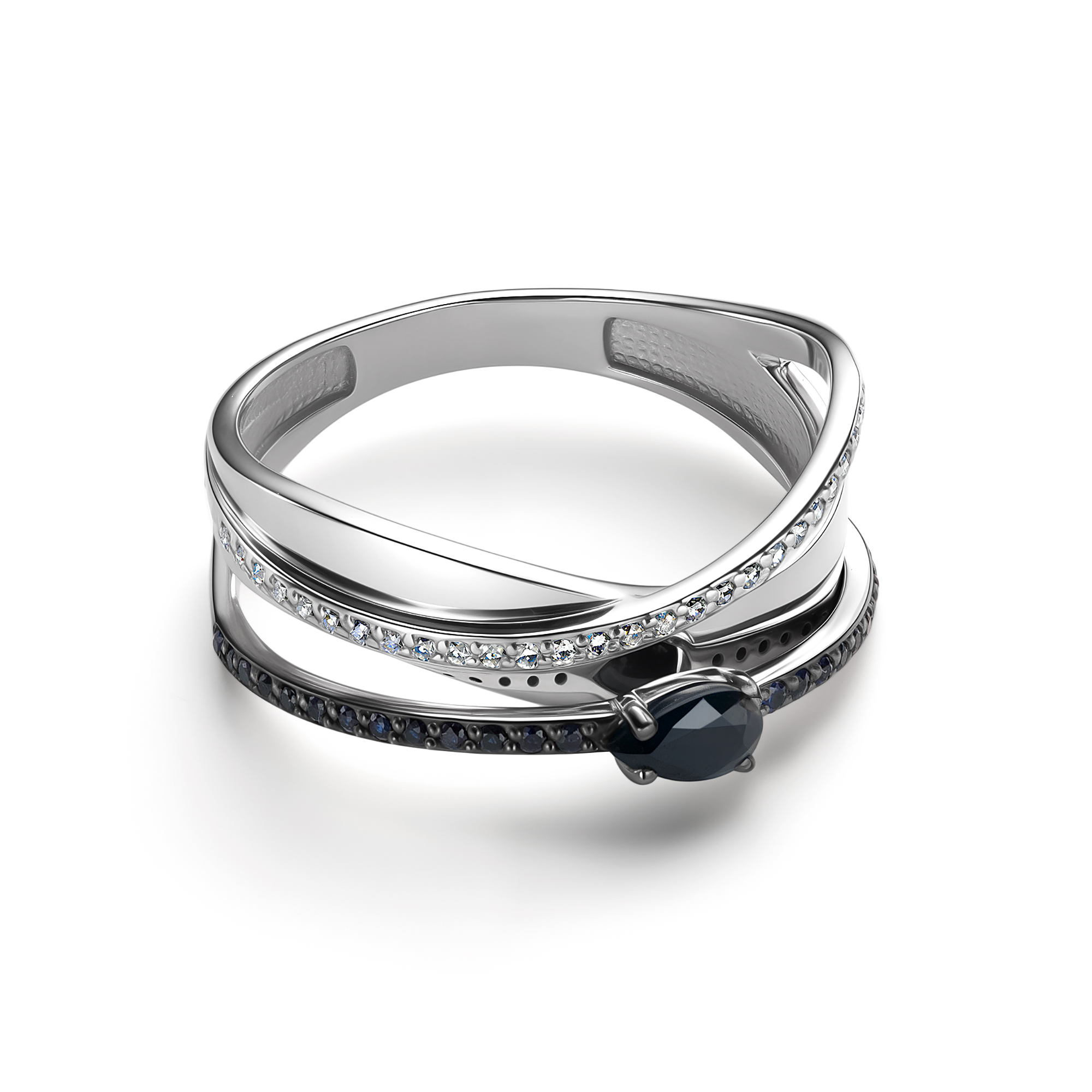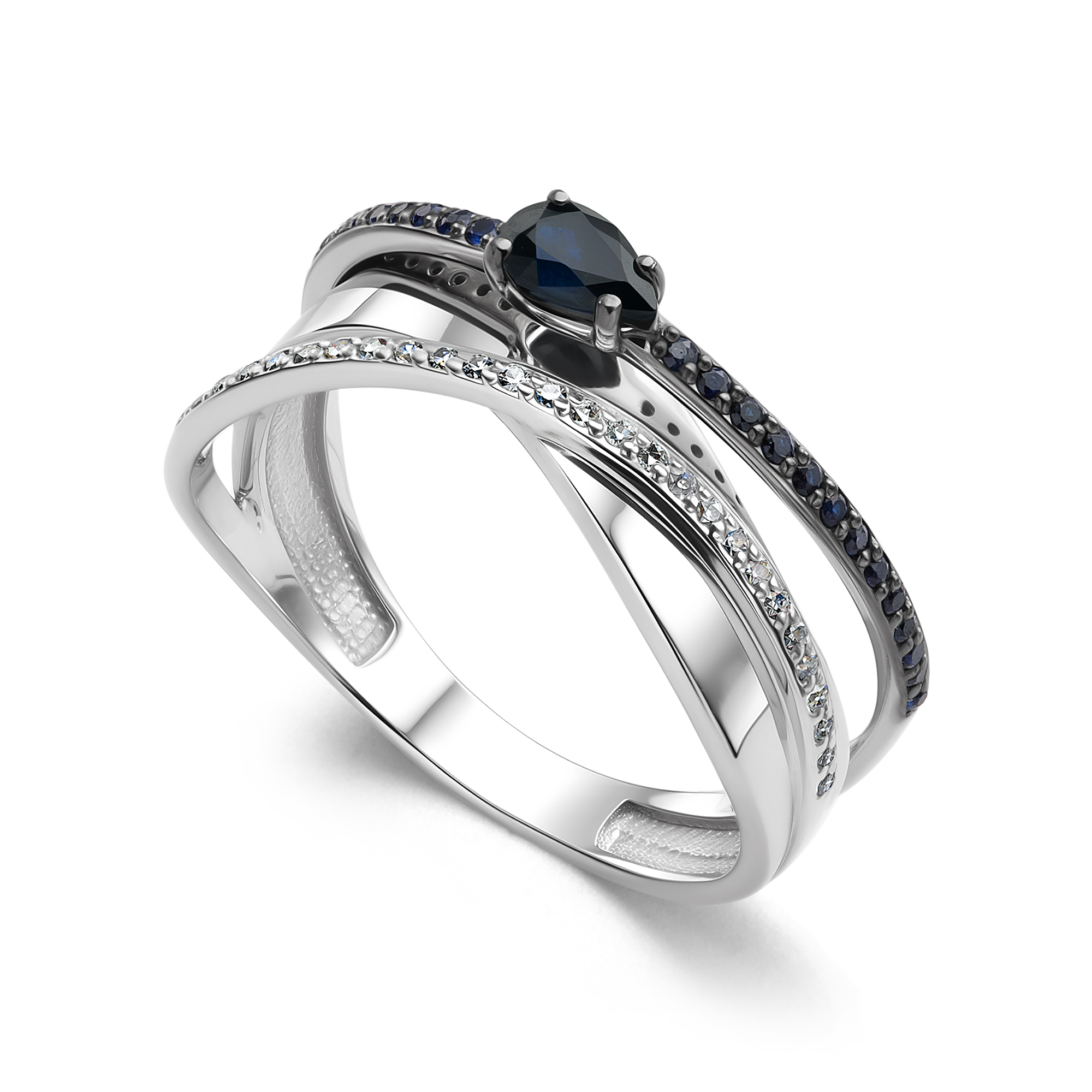 Кольцо с сапфирами и бриллиантами из белого золота 585 пробы арт. 16424-202