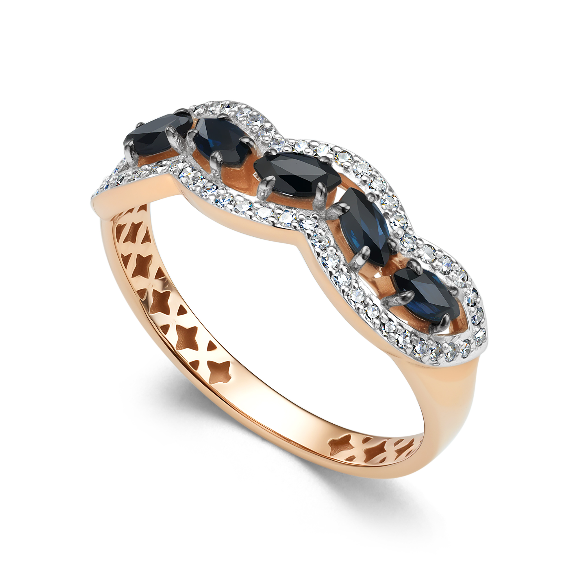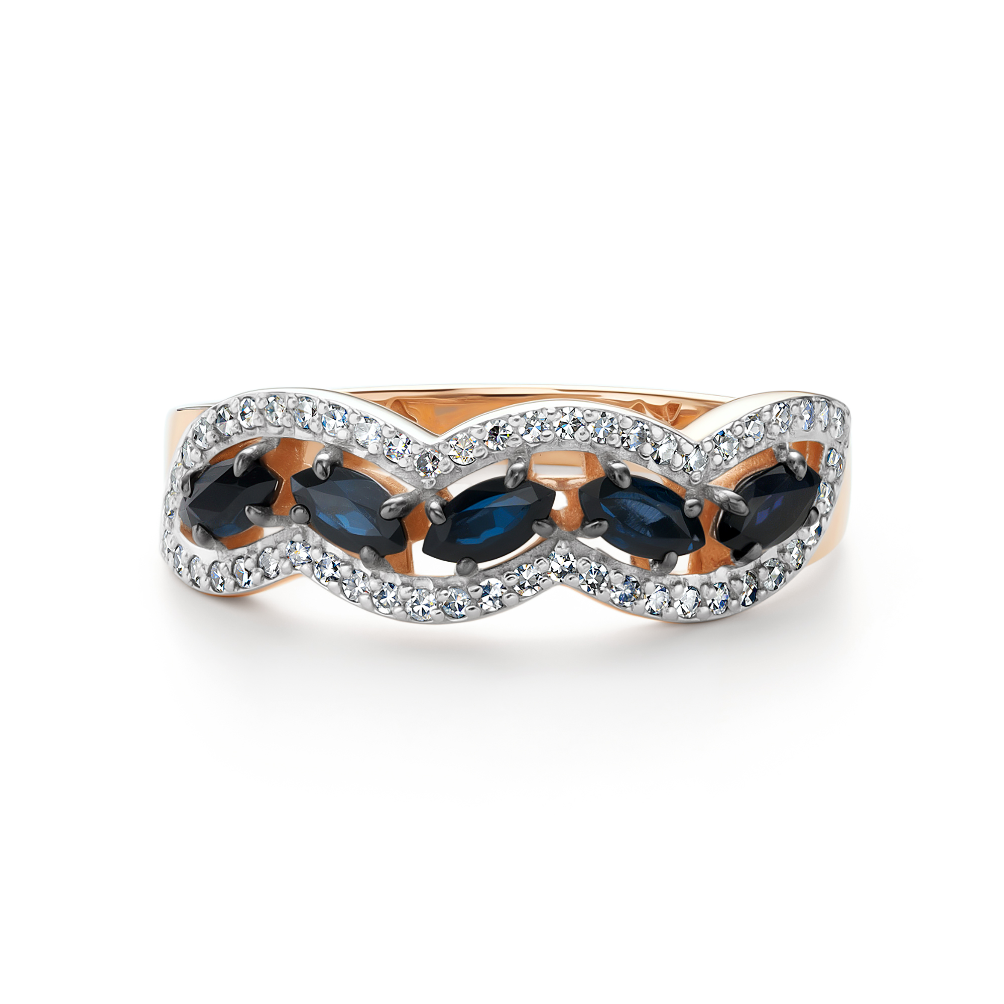 Кольцо с сапфирами и бриллиантами из золота 585 пробы арт. 16450-102