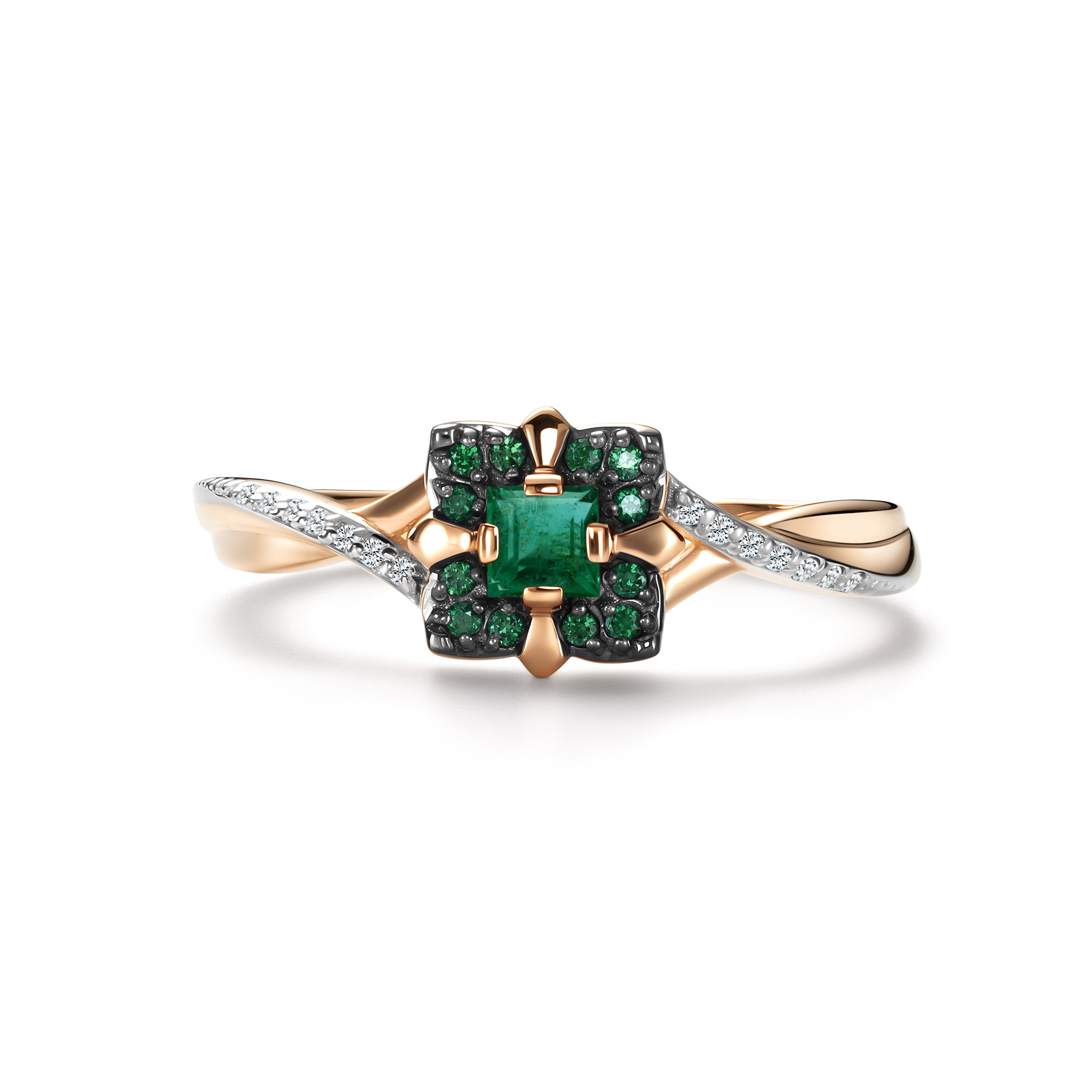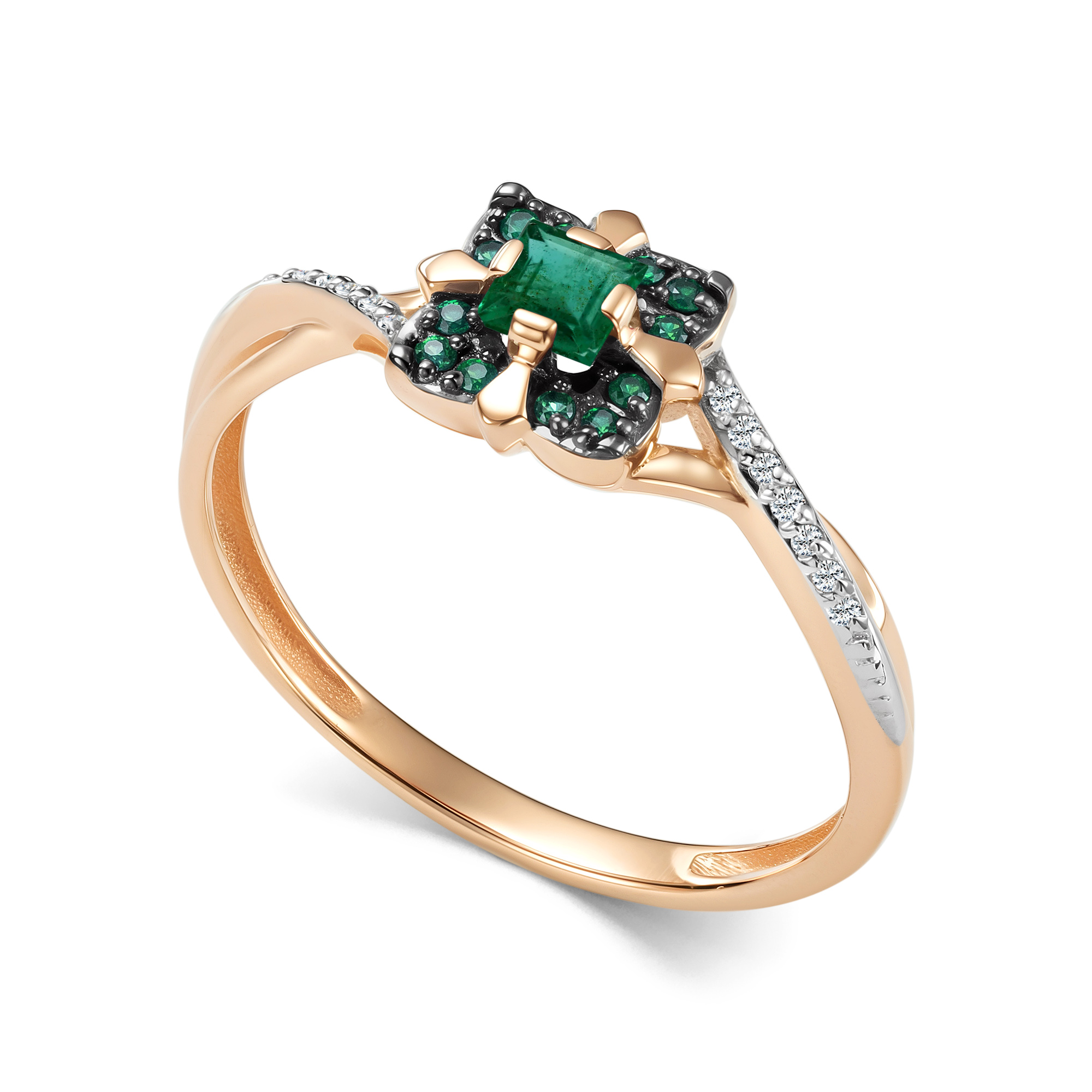 Кольцо с изумрудами и бриллиантами из золота 585 пробы арт. 17062-101