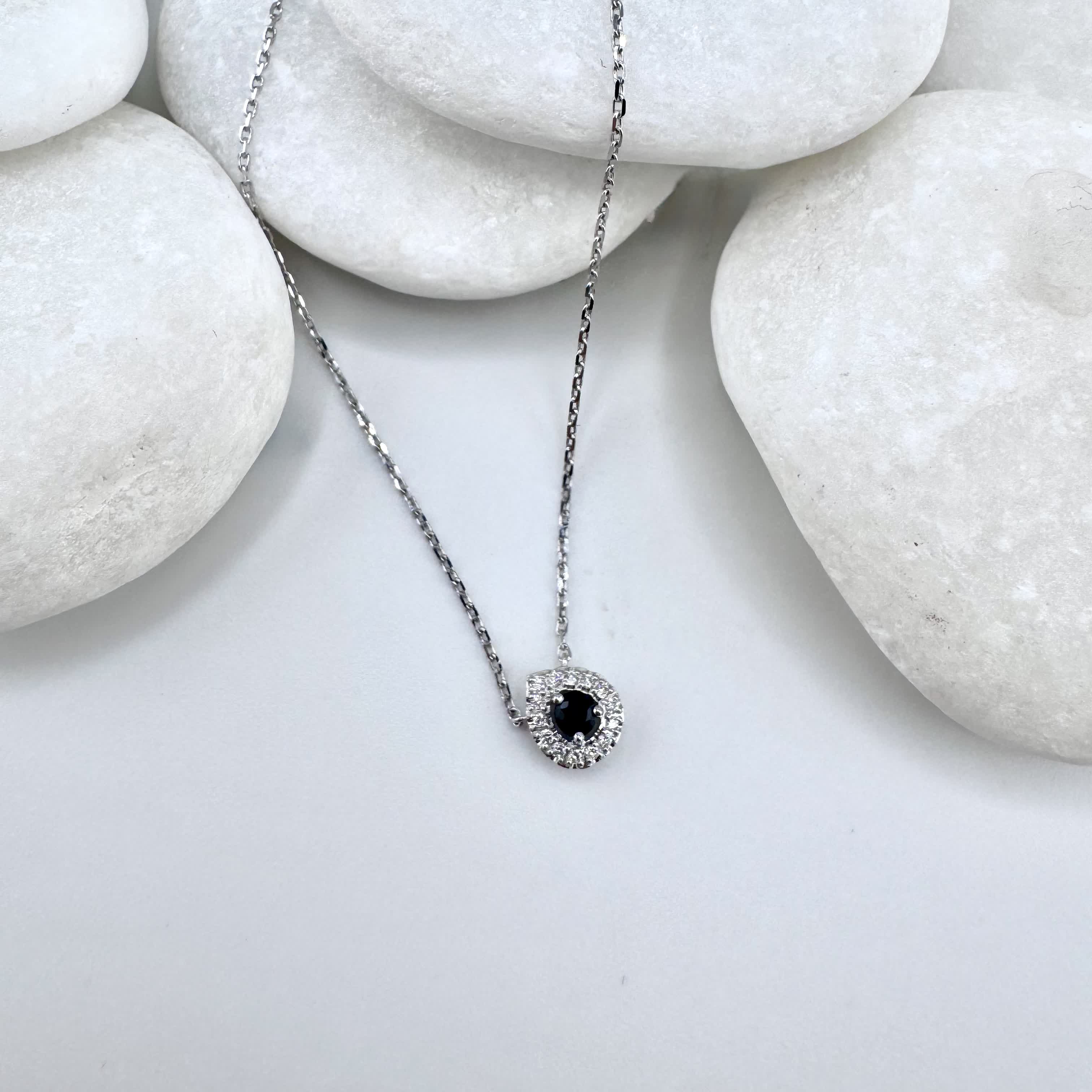 Колье с сапфиром и бриллиантами из белого золота 585 пробы арт. 2050-51201