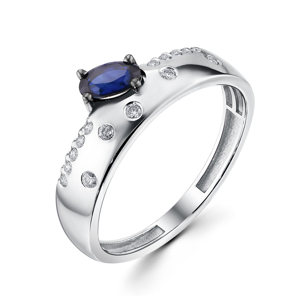 Кольцо с сапфиром и бриллиантами из белого золота 585 пробы арт. 2056-11201