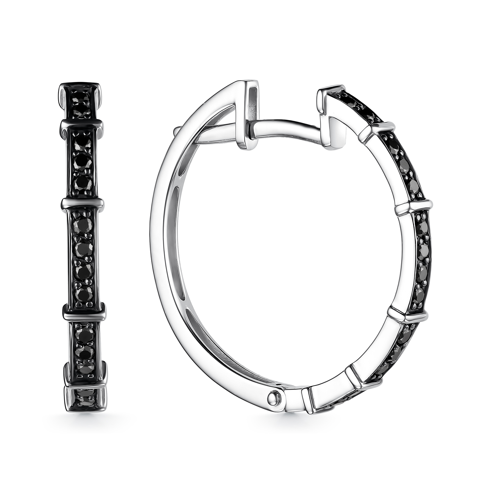 Серьги с черными бриллиантами из белого золота 585 пробы арт. 24746-213