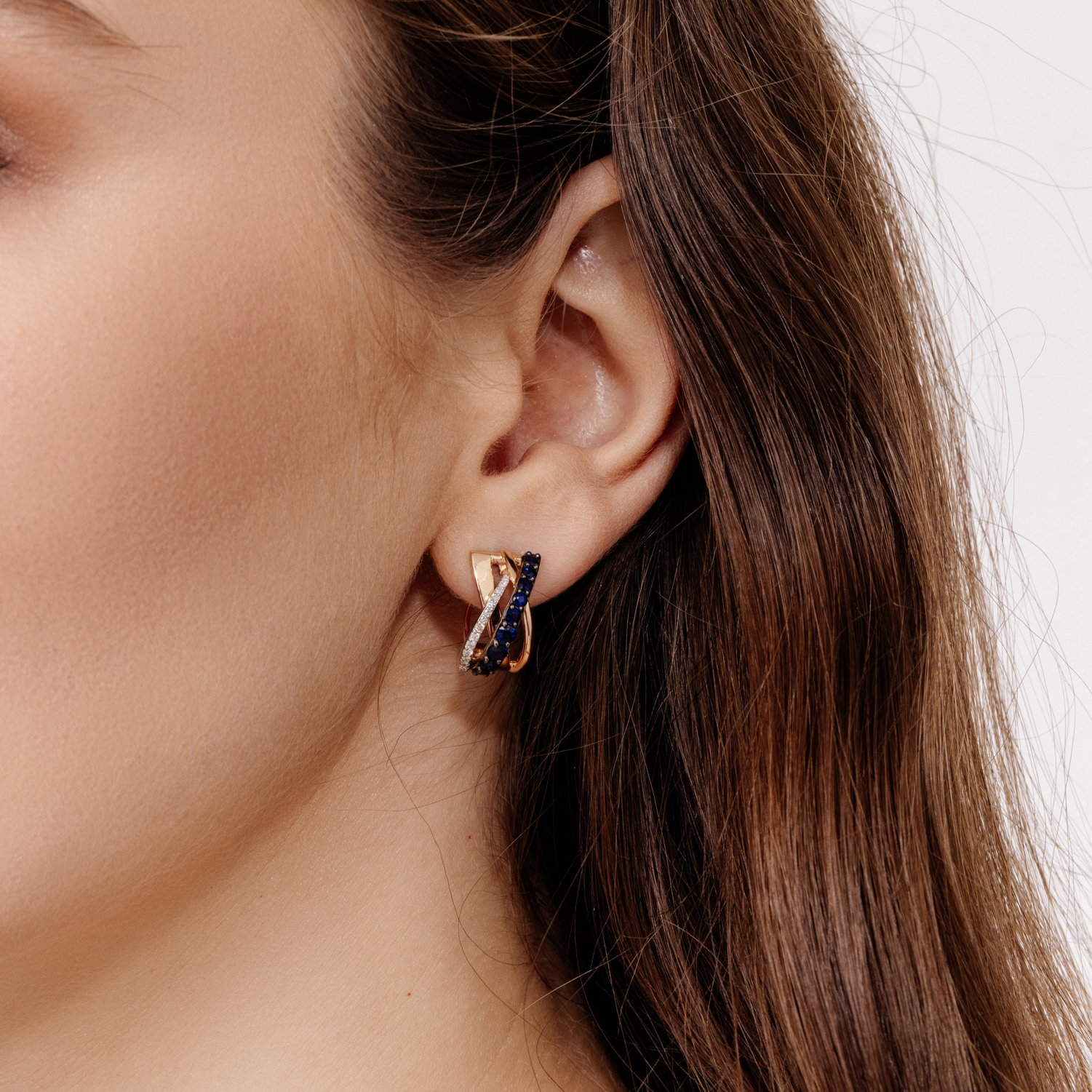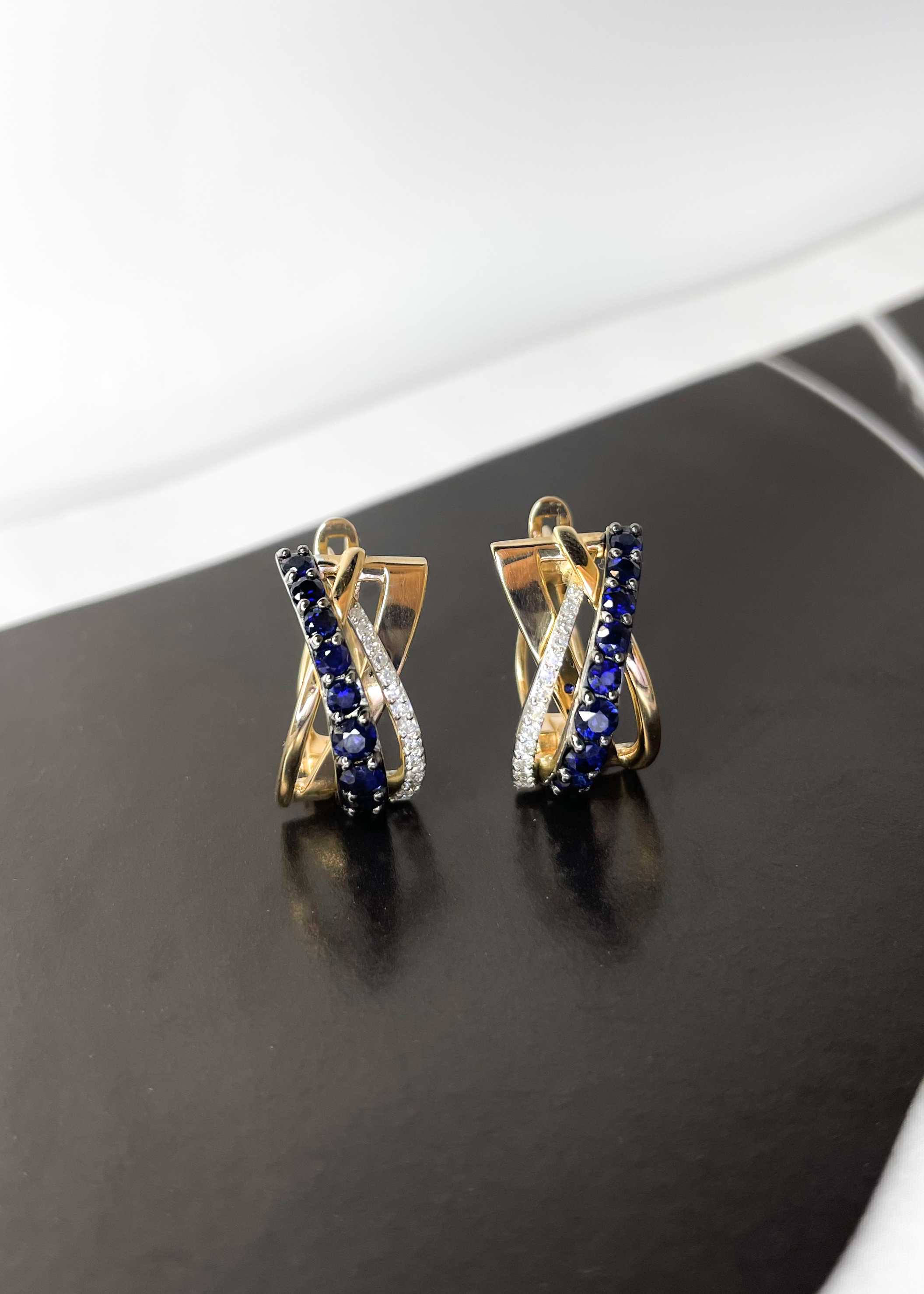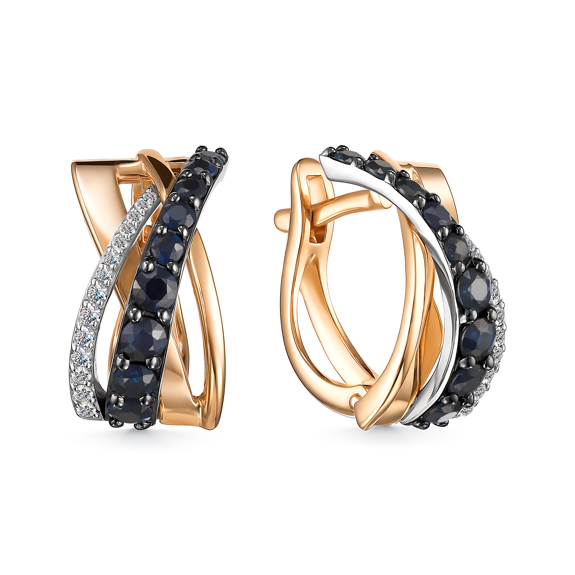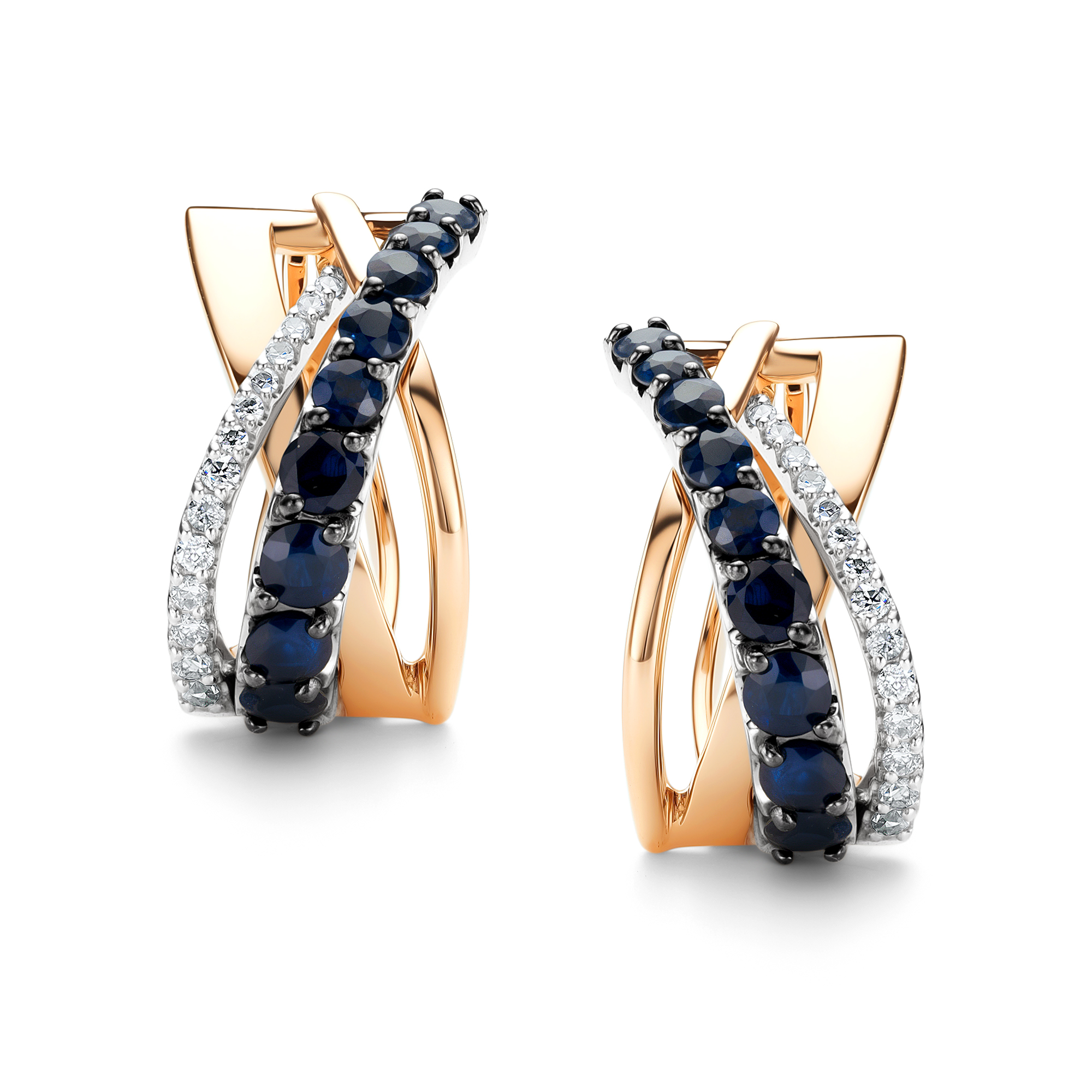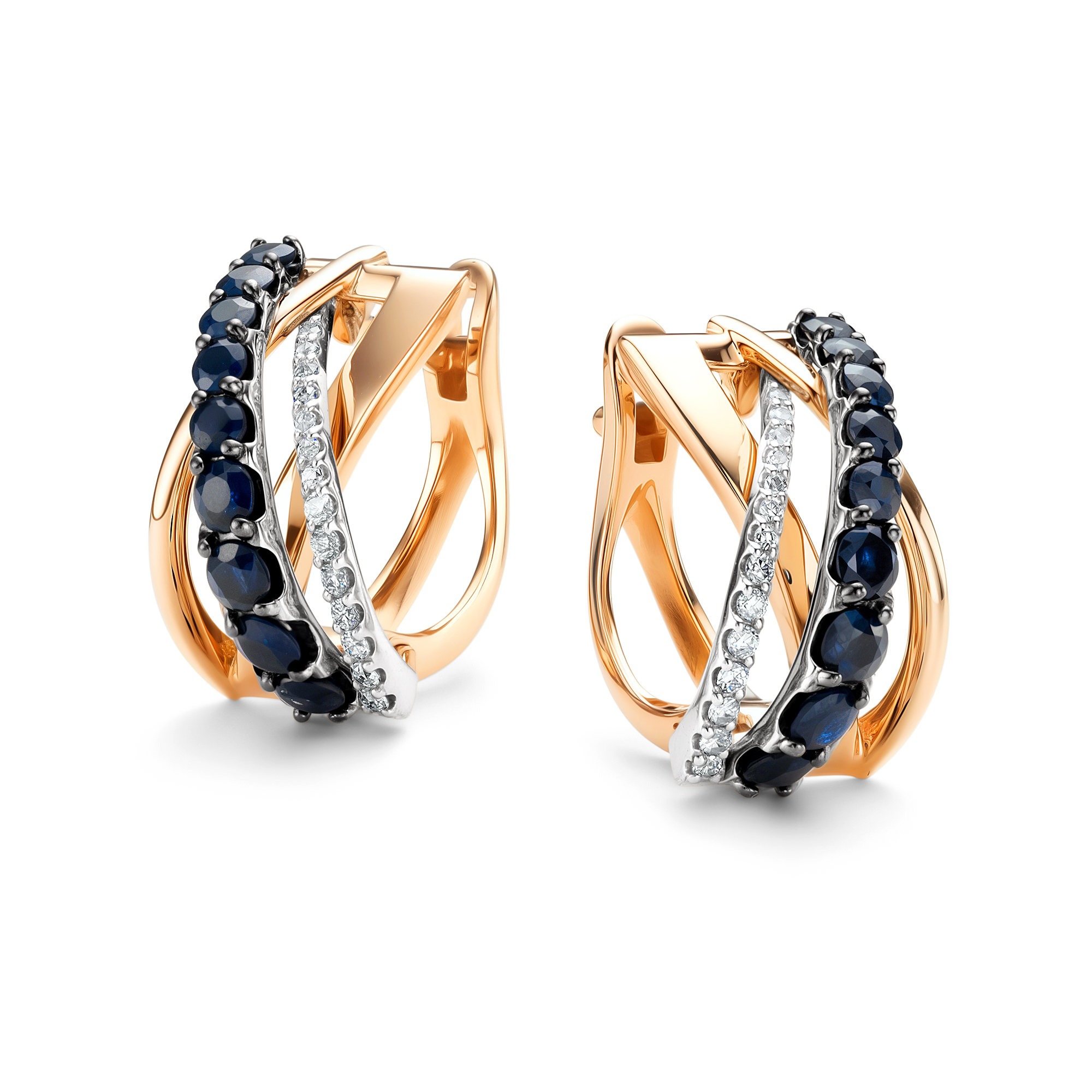 Серьги с сапфирами и бриллиантами из золота 585 пробы арт. 24777-102