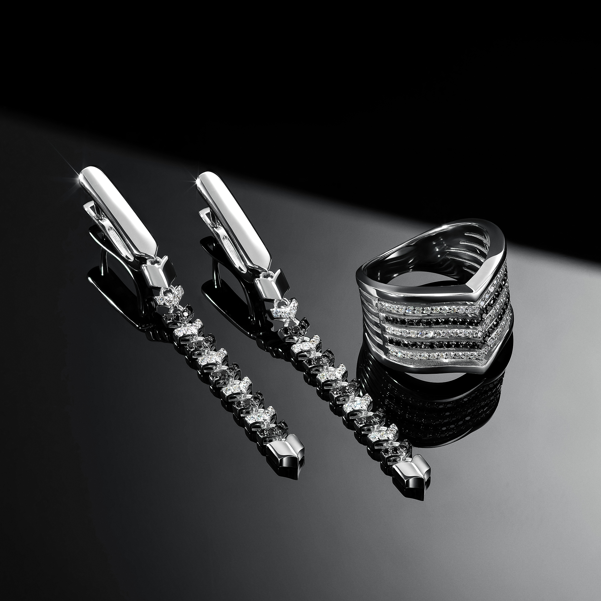 Серьги с бриллиантами из белого золота 585 пробы арт. 25605-213