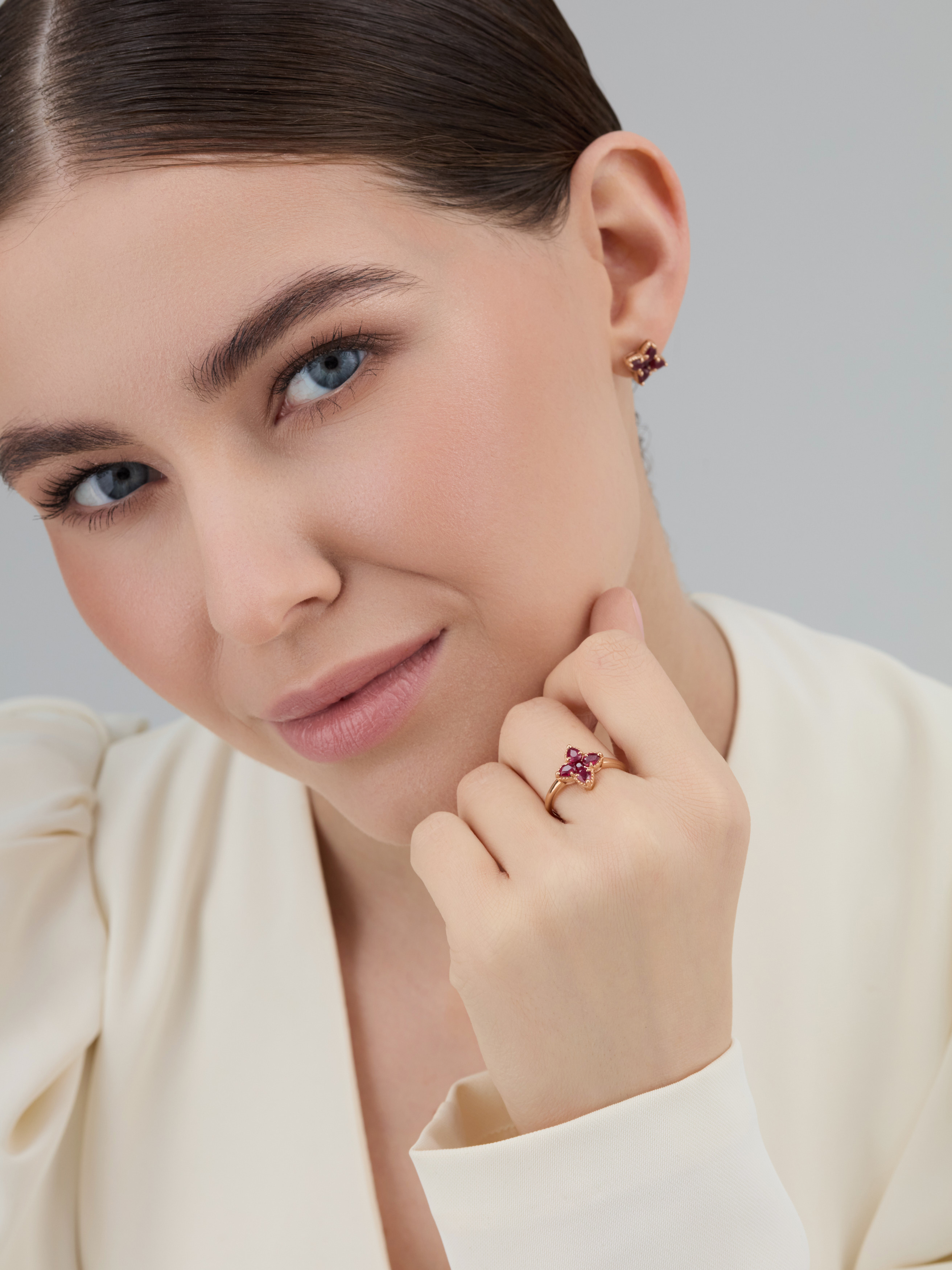 Серьги "Цветы" с рубинами из золота 585 пробы арт. 26138-103
