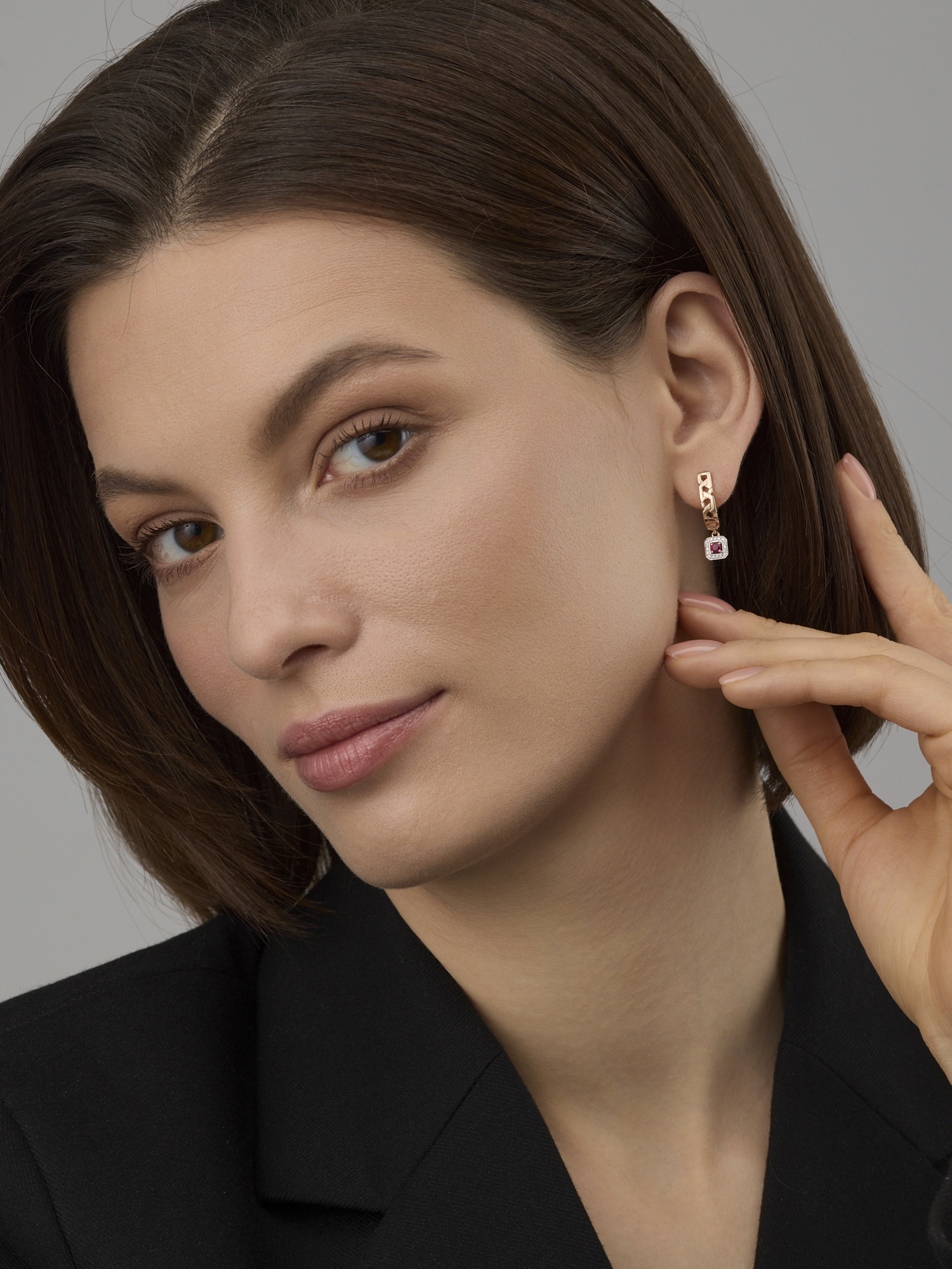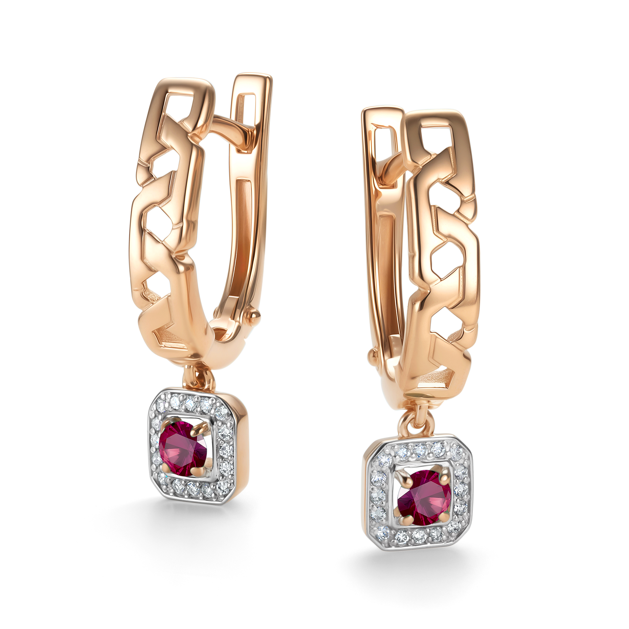Серьги с рубинами и бриллиантами из золота 585 пробы арт. 26375-103