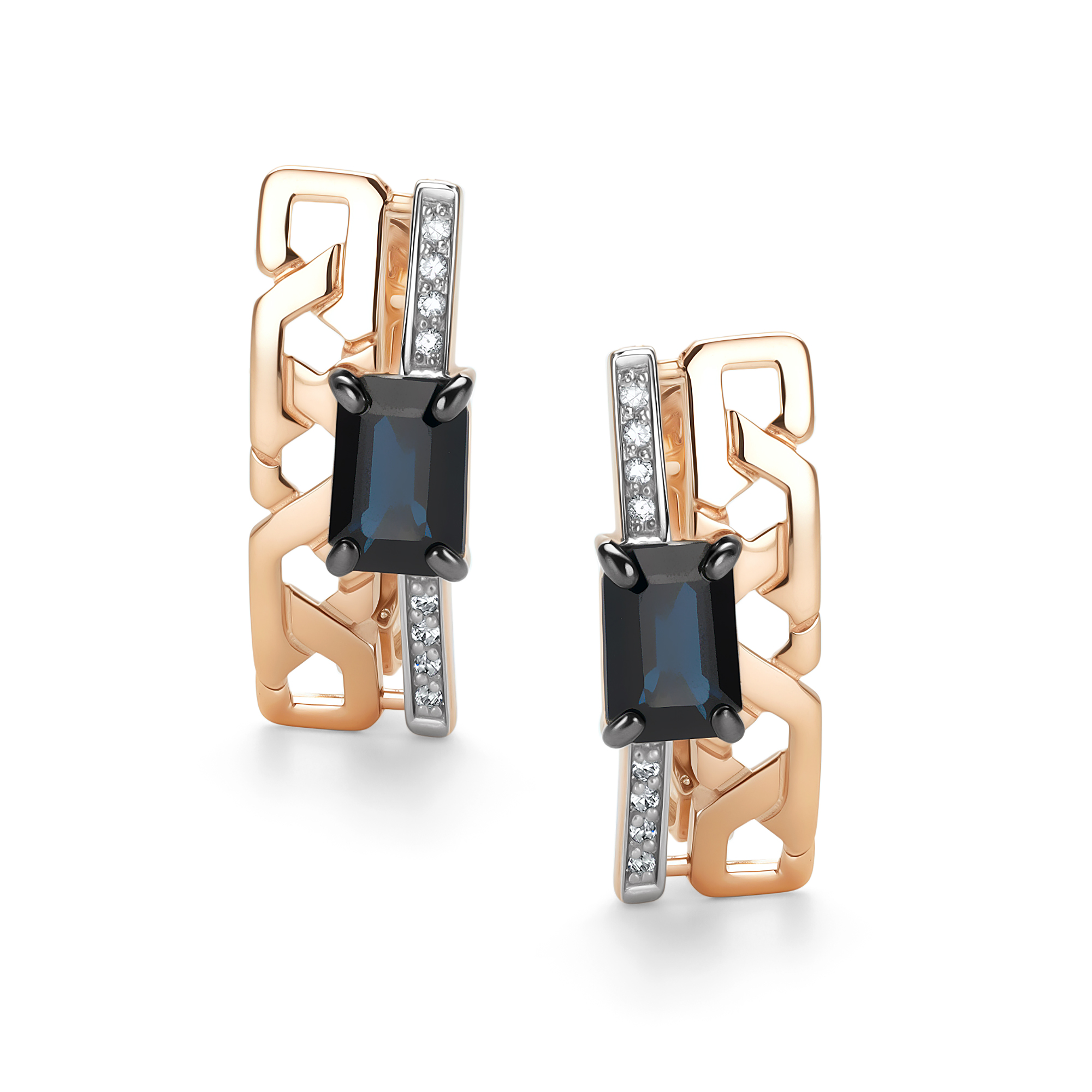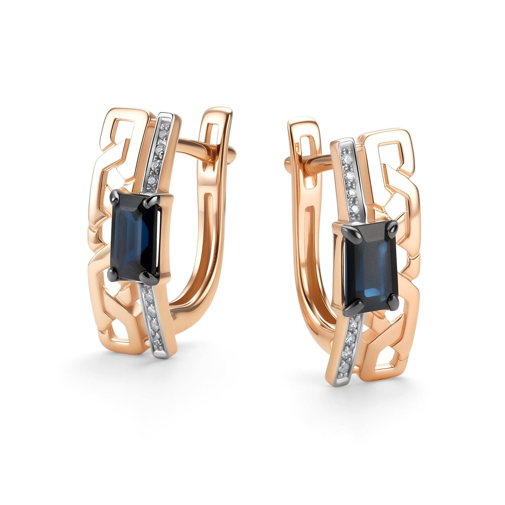 Серьги с сапфирами и бриллиантами из золота 585 пробы арт. 26376-102