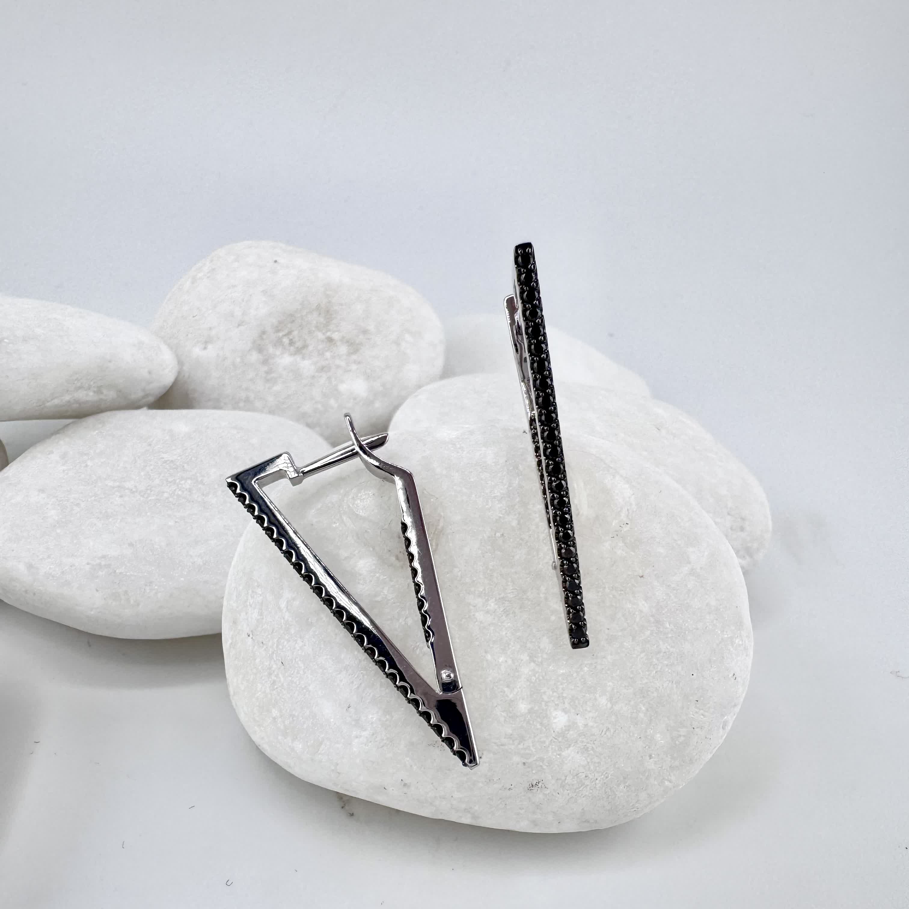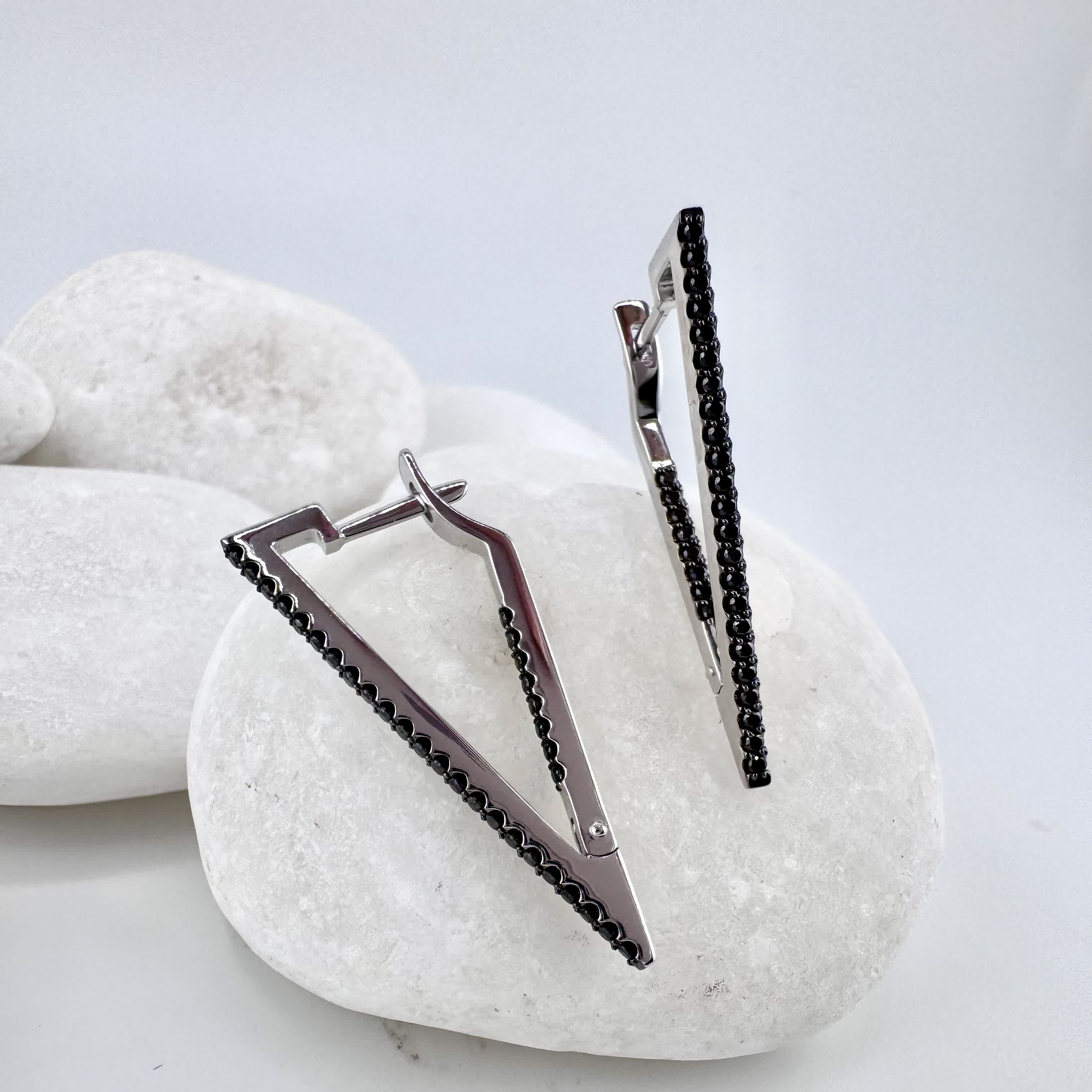 Серьги с черными бриллиантами из белого золота 585 пробы арт. 3595-20901