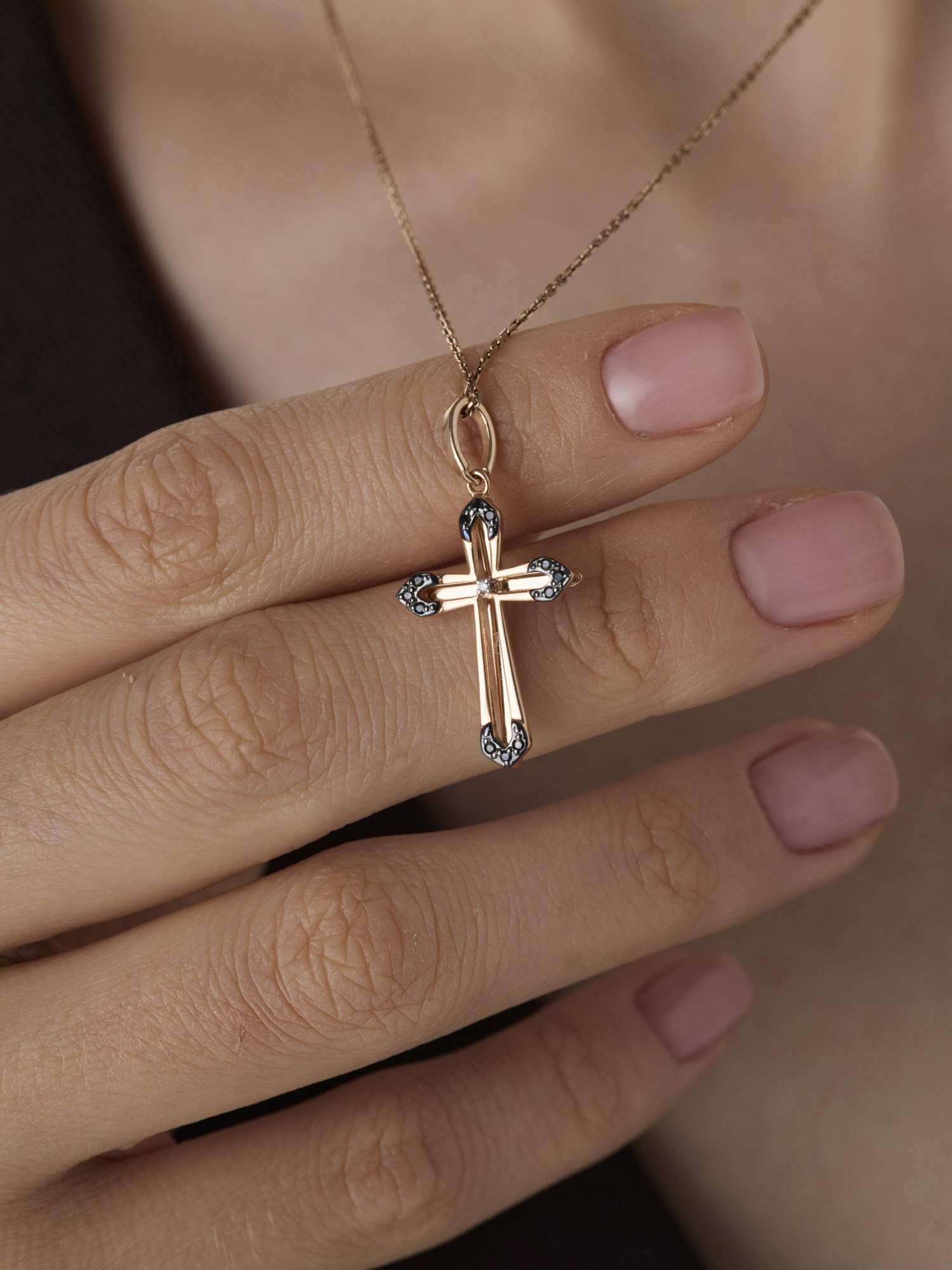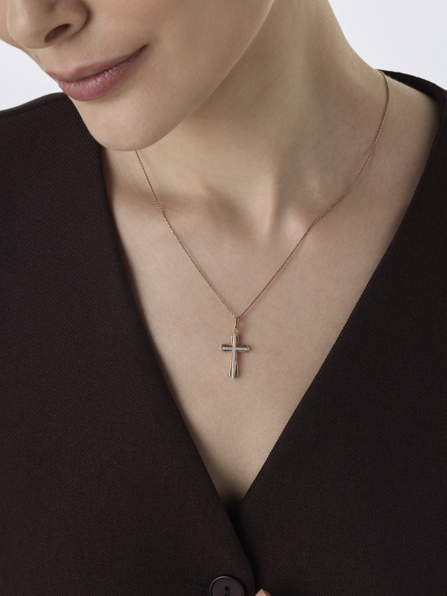 Декоративный крест с бриллиантами из золота 585 пробы арт. 36665-113