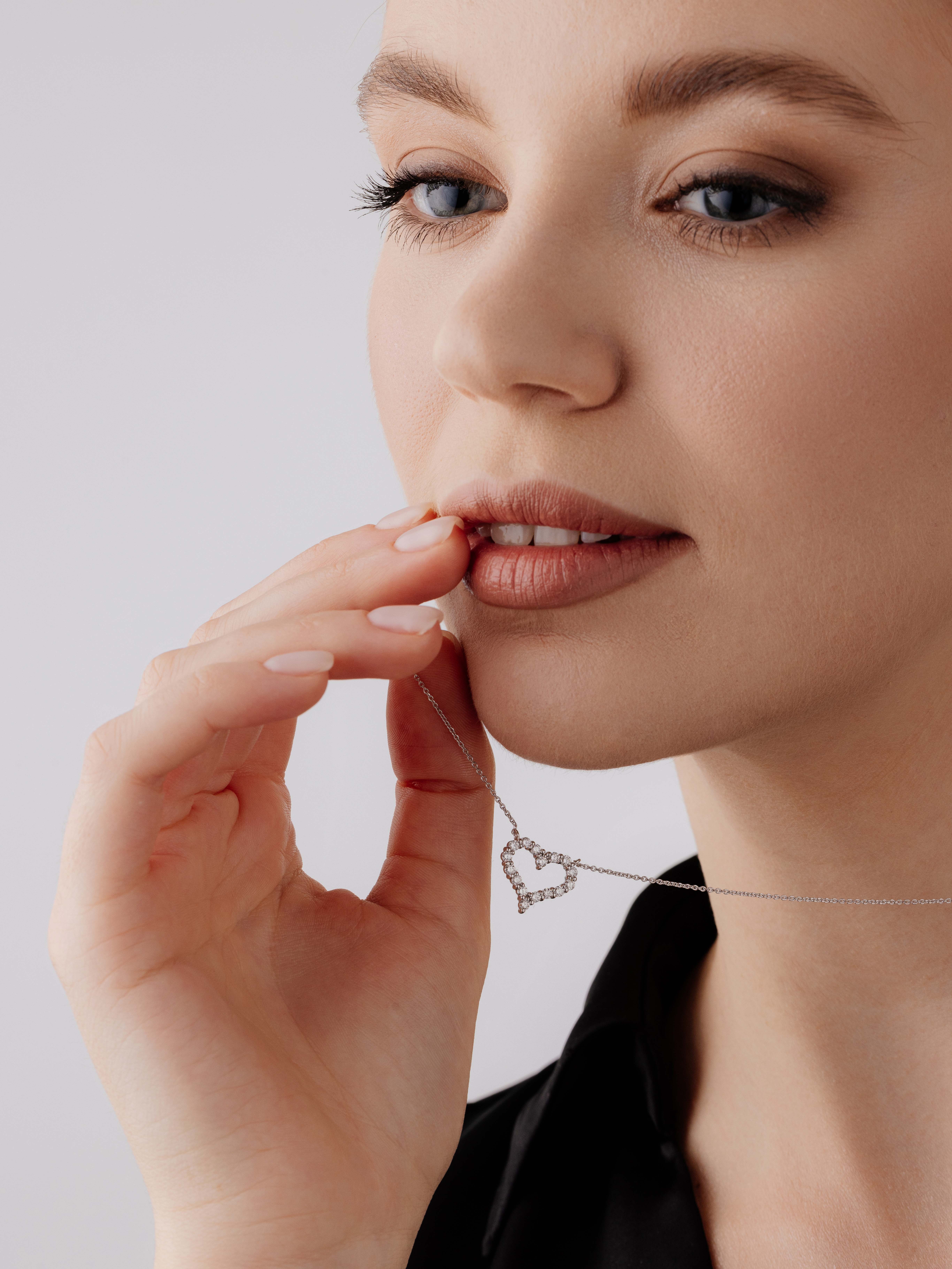 Колье "Сердце" с бриллиантами из белого золота 585 пробы арт. 65460-200