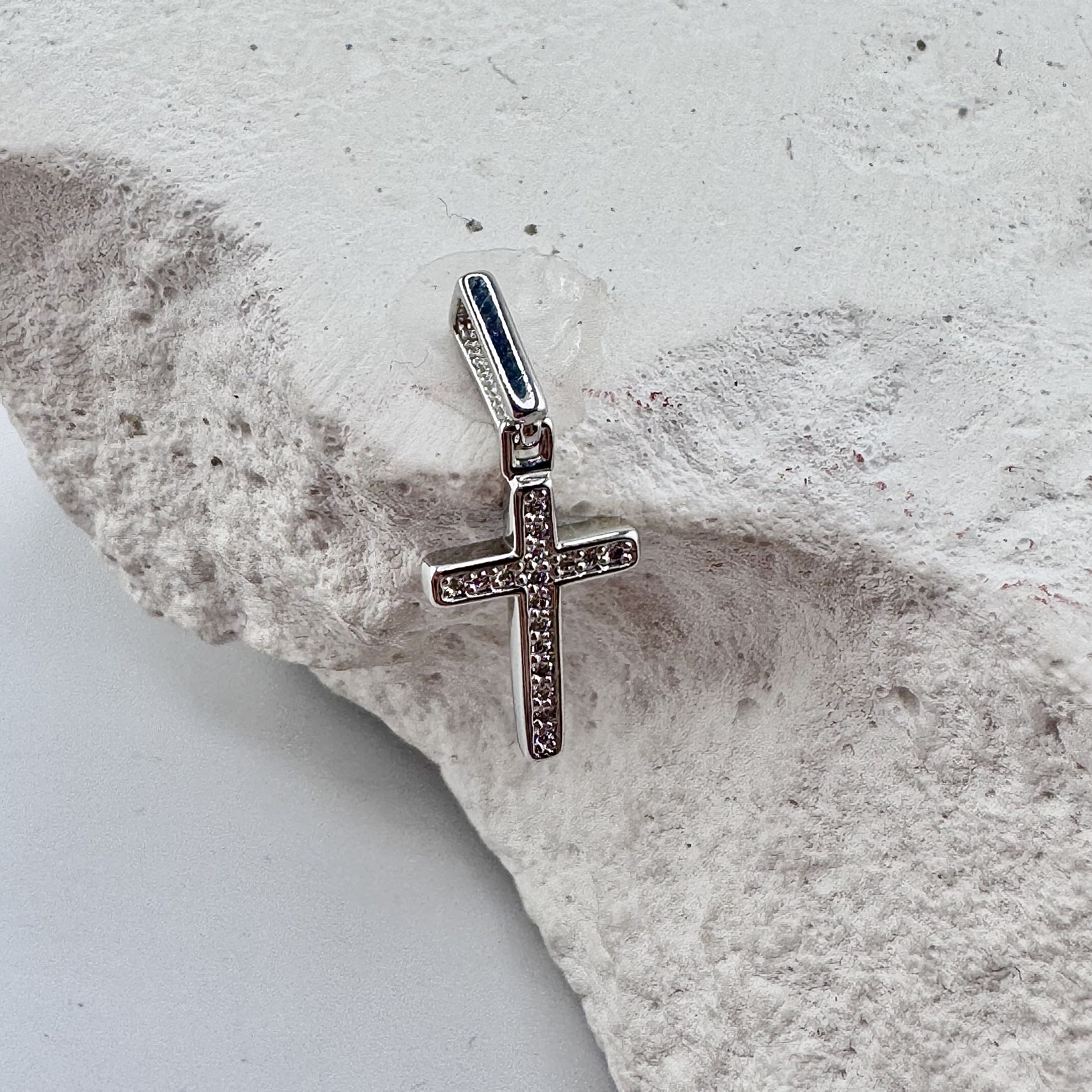 Декоративный крест с бриллиантами из белого золота 585 пробы арт. 920921Ч.2
