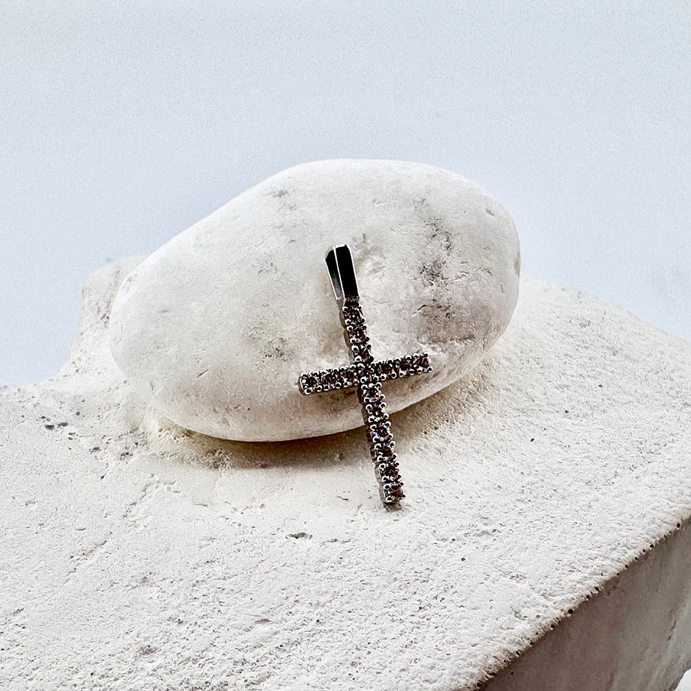 Декоративный крест с бриллиантами из белого золота 585 пробы арт. 920963.2