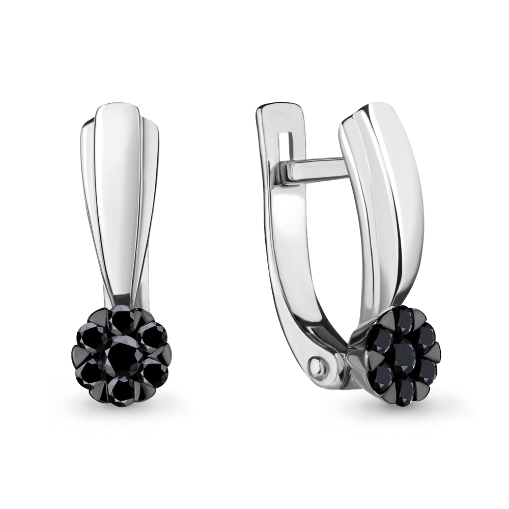 Серьги с черными бриллиантами из белого золота 585 пробы арт. 942411Ч.2