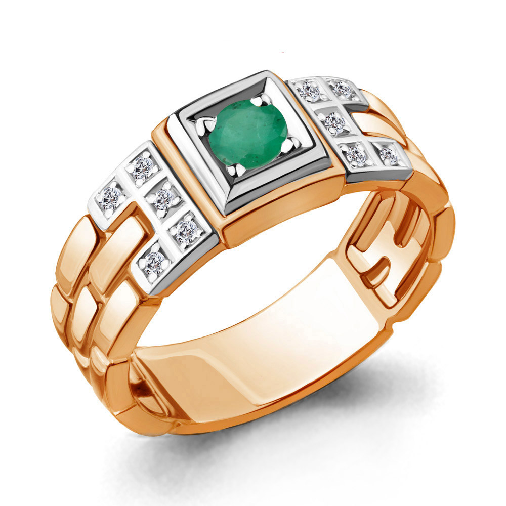 Кольцо с изумрудом и бриллиантами из золота 585 пробы арт. 960637к.1