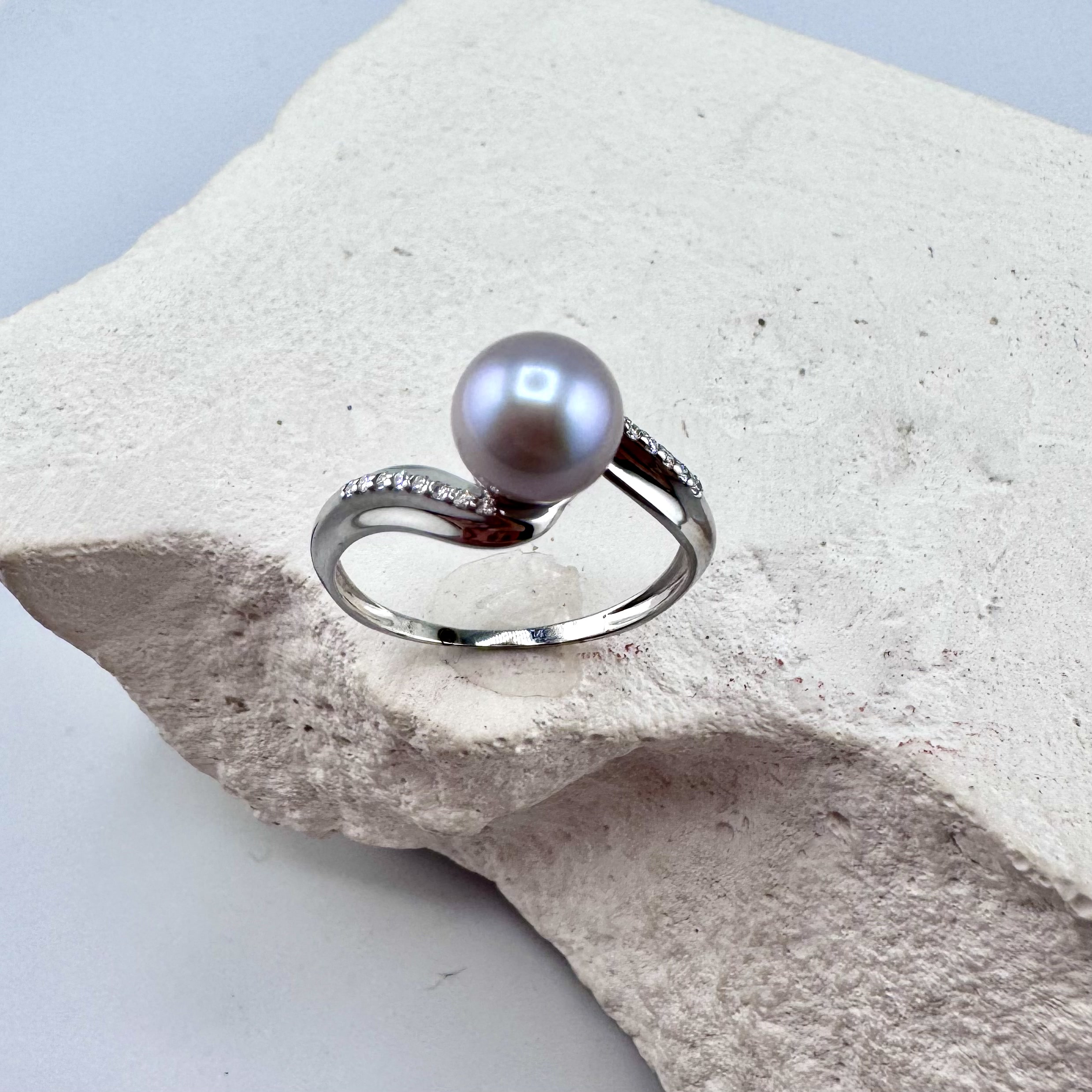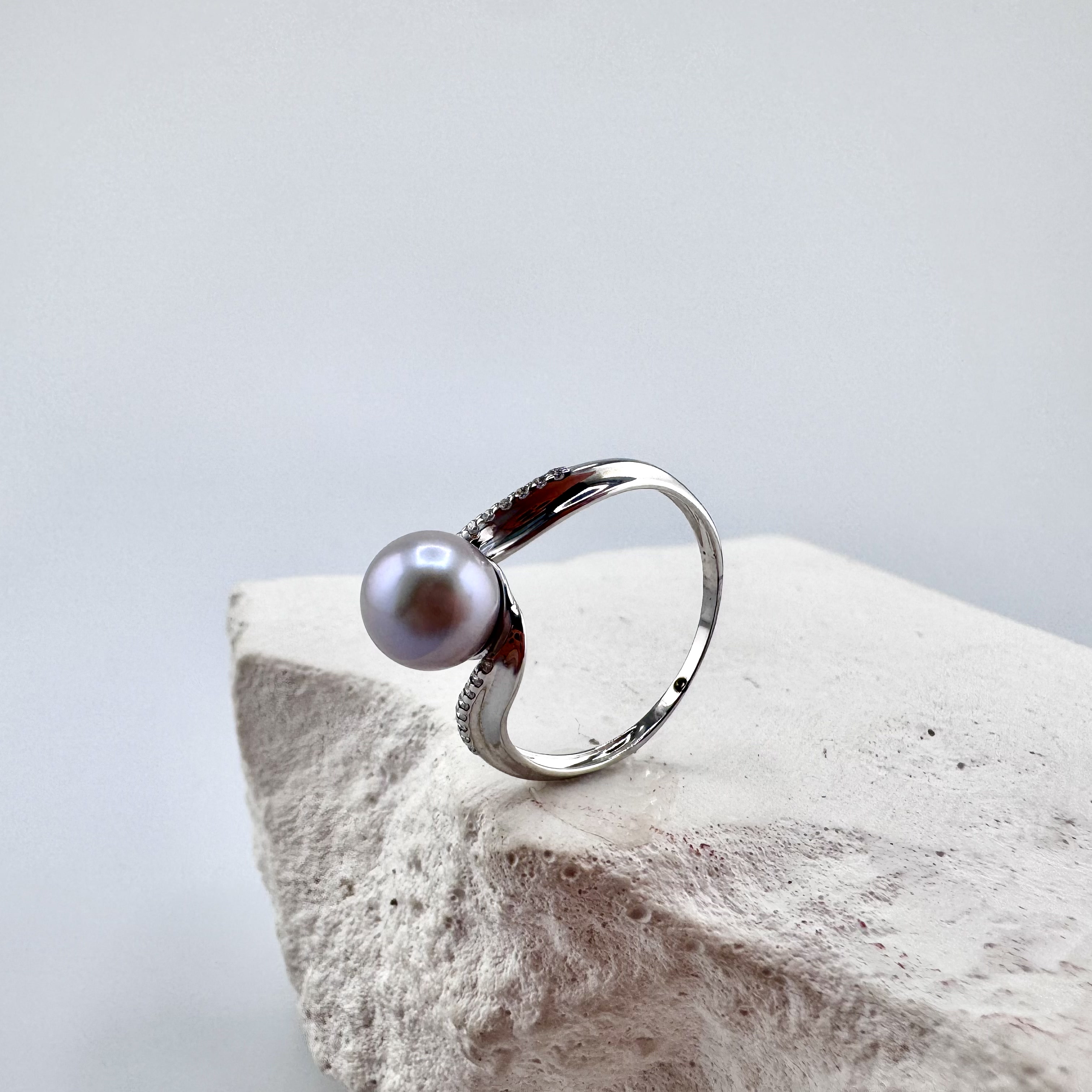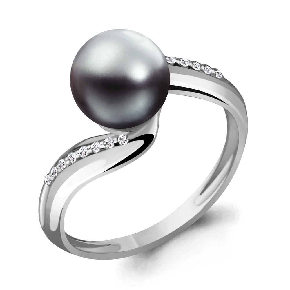 Кольцо с бриллиантами и жемчугом из белого золота 585 пробы арт. 961378Ч.2