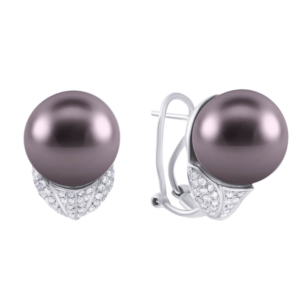 Серьги с жемчугом и бриллиантами из белого золота 585 пробы арт. AAE/3873