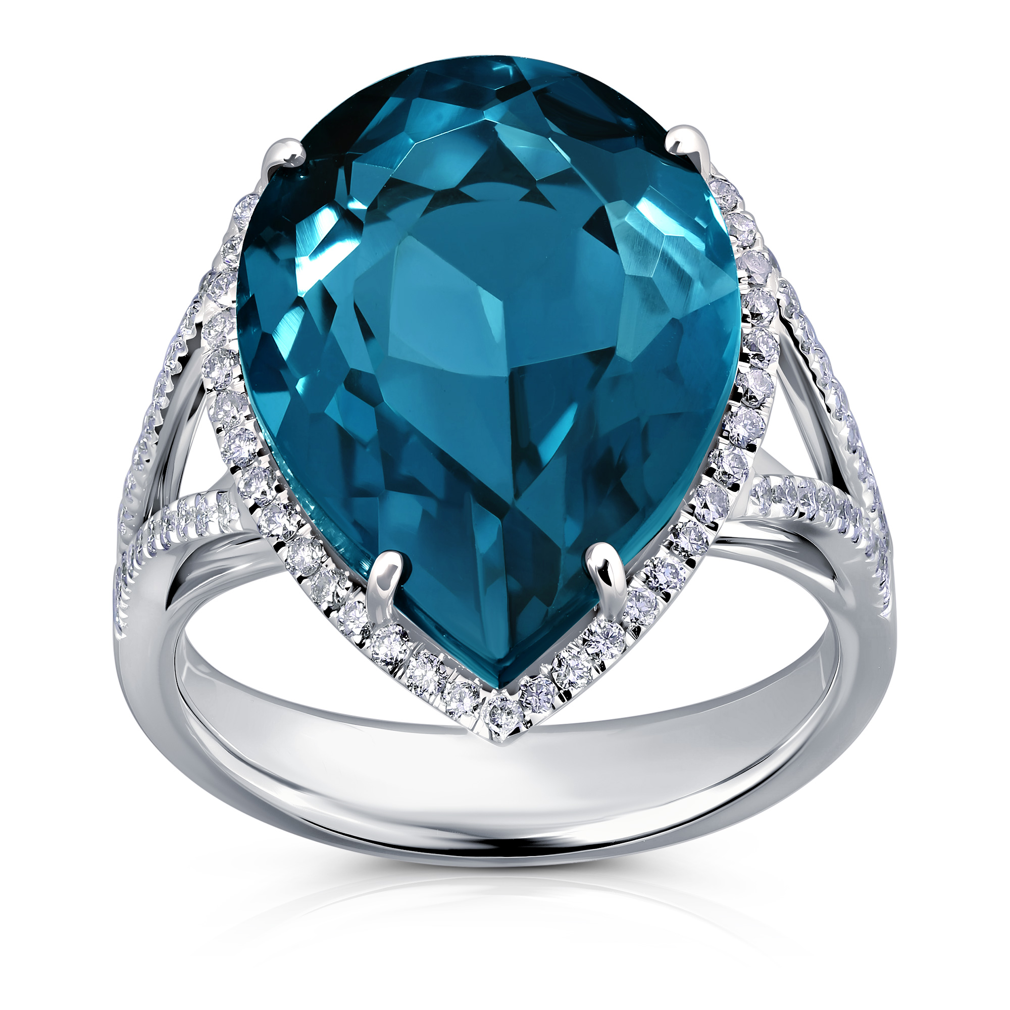 Кольцо с топазом и бриллиантами из белого золота 585 пробы арт. AF7-29