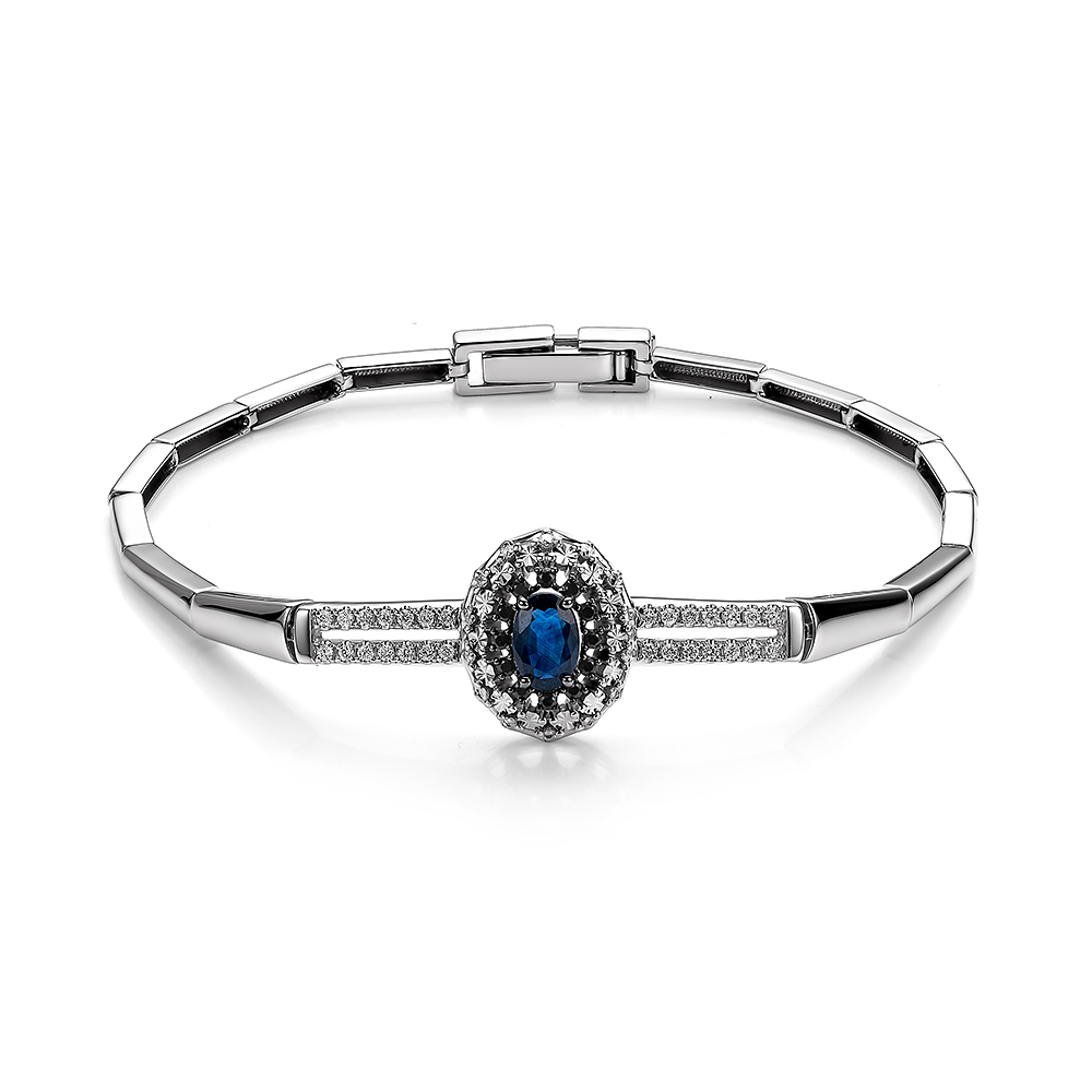 Браслет с сапфиром и бриллиантами из белого золота 585 пробы арт. Б/709-222