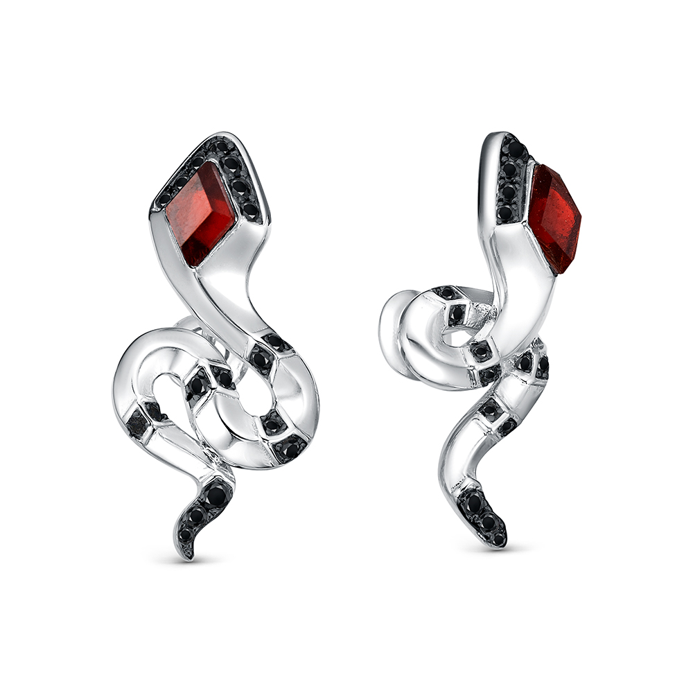 Серьги "Змеи" с гранатом и шпинелью из серебра 925 пробы арт. BSL23106761_SR_GR_SP_WG