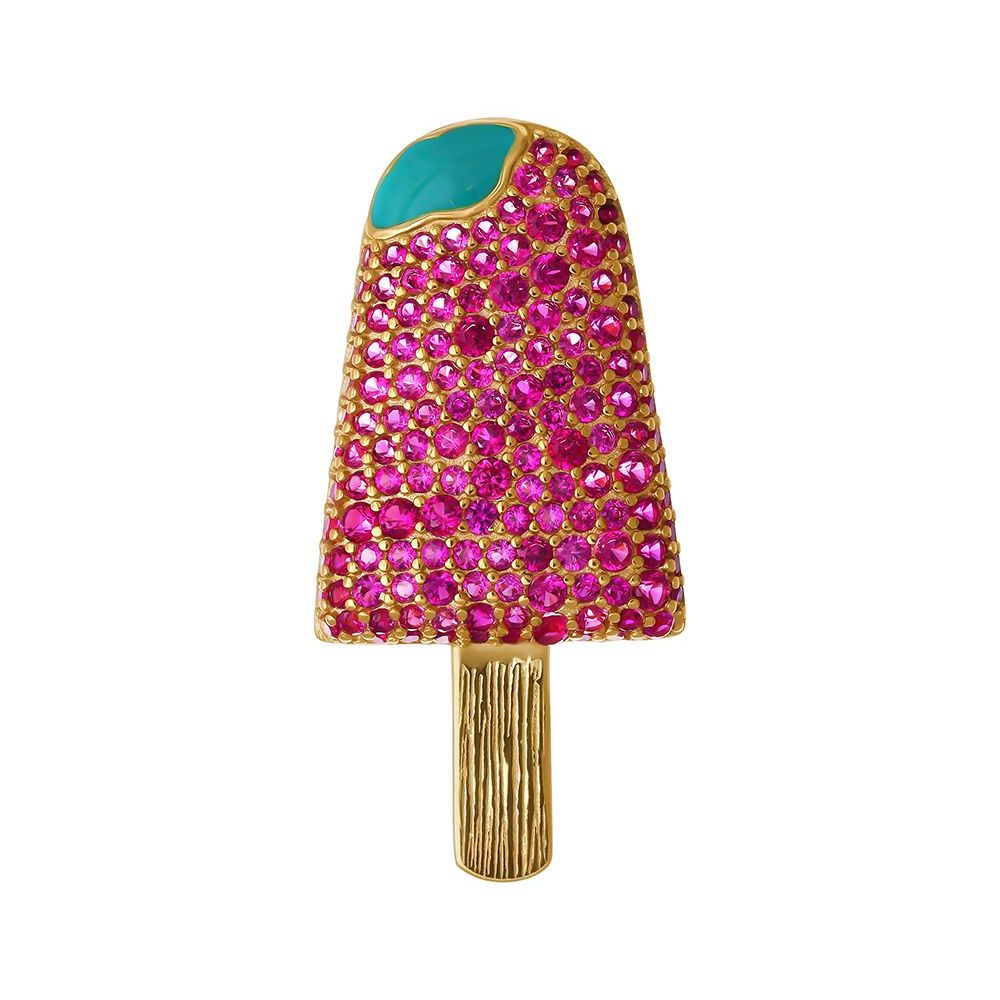 Брошь "Мороженое" с эмалью и фианитами из серебра 925 пробы с позолотой арт. C00290_BR_ENAM_001_YG