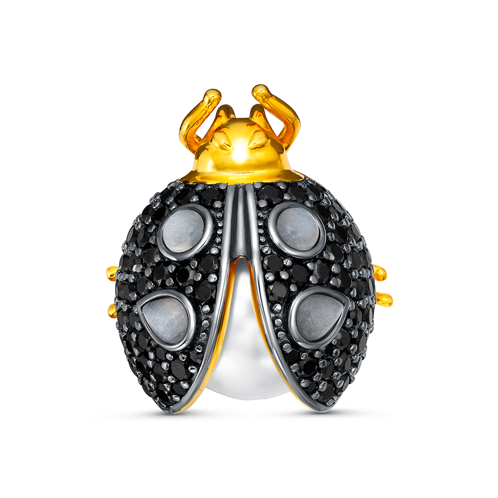 Брошь "Жук" со шпинелью, жемчугом и лунным камнем из серебра 925 пробы с позолотой арт. C00600A_BR_LK_SP_WM_YG