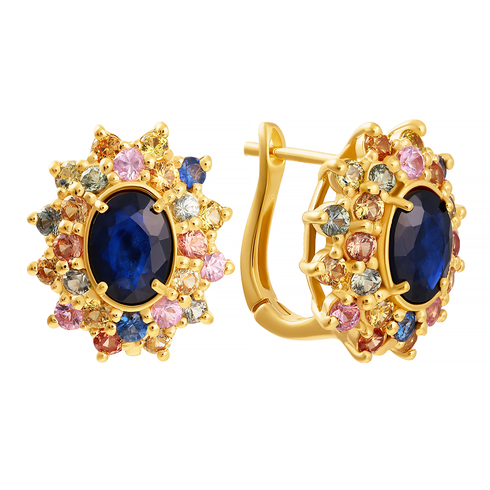 Серьги с корундами и сапфирами из серебра 925 пробы с позолотой арт. E-03264-88-S03_SR_SM_CR_Y