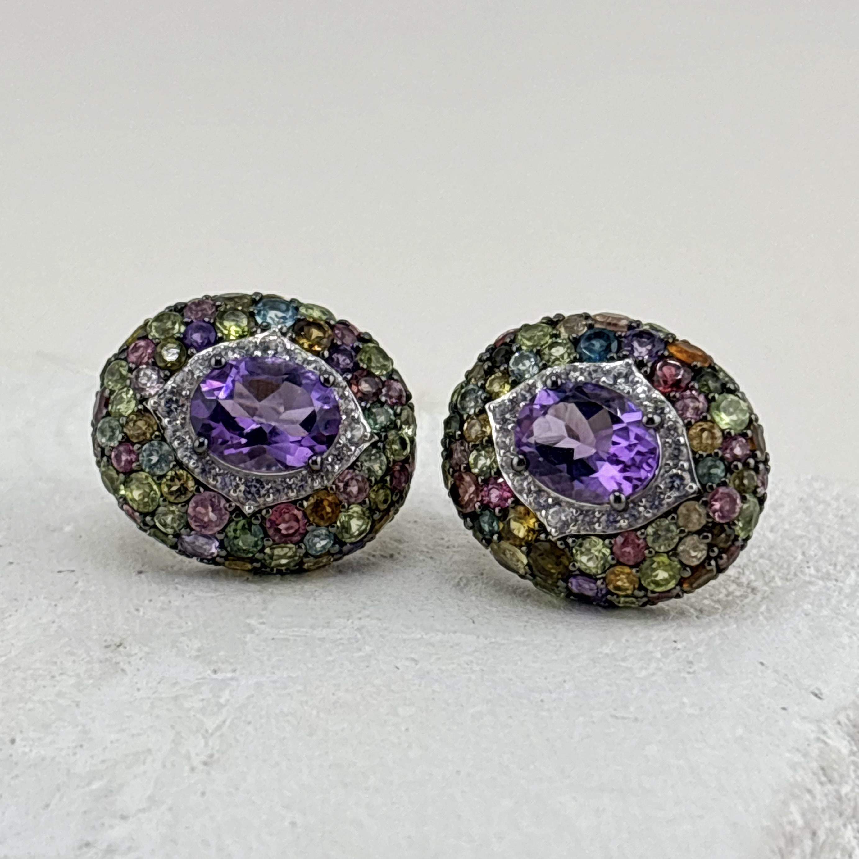 Серьги с аметистом, турмалинами, перидотом и цирконом из серебра 925 пробы арт. E-05693-88-S00_SR_AM_PD_T
