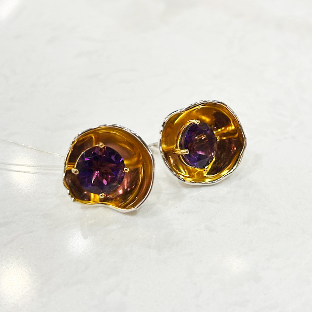 Серьги с аметистом из серебра 925 пробы с позолотой арт. E06974_SR_AM_WJ