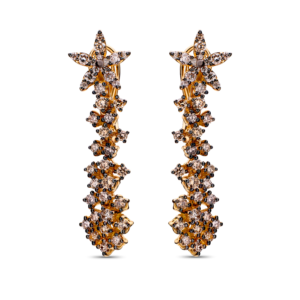 Серьги "Цветы" с коньячными бриллиантами из золота 585 пробы арт. E1300-2002