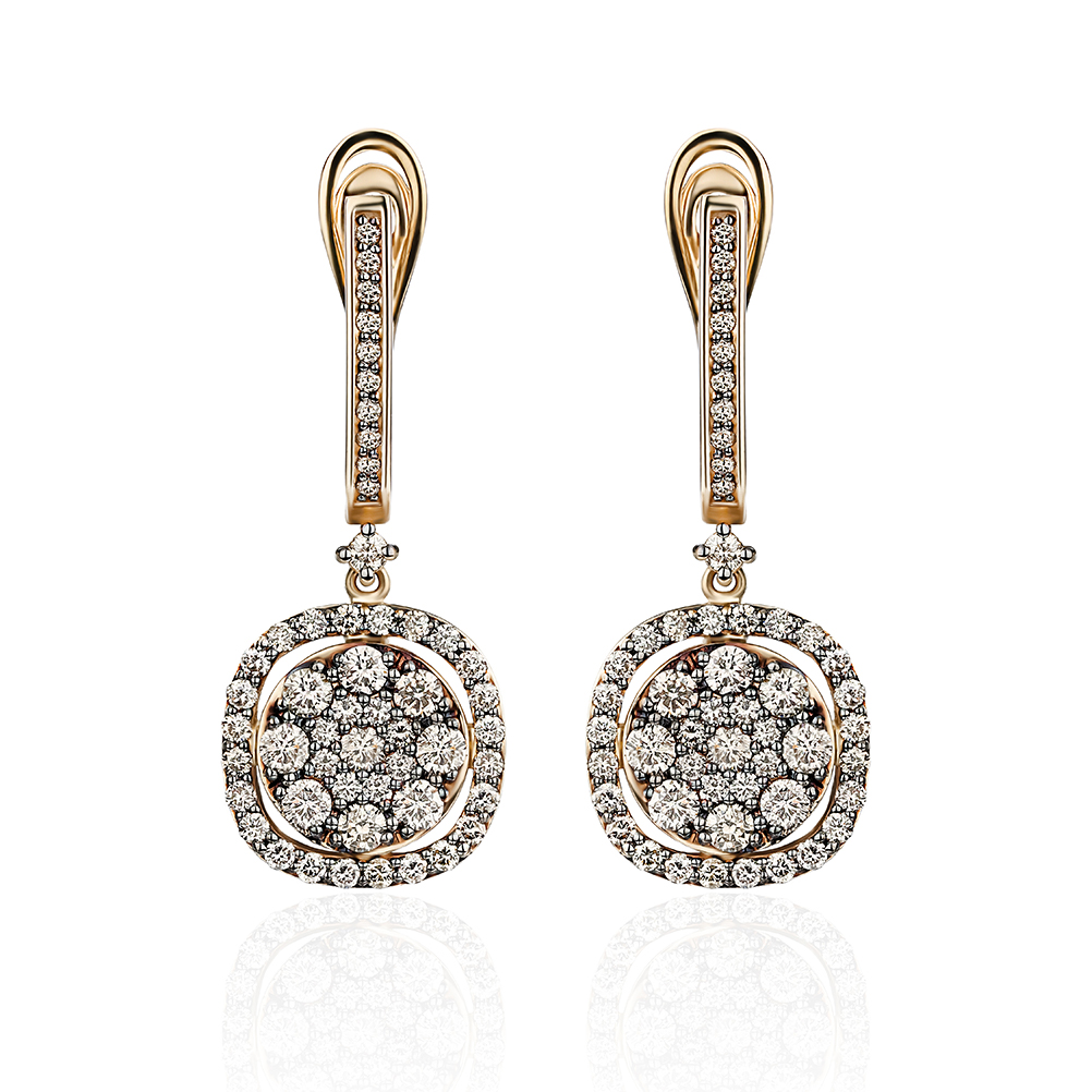 Серьги с коньячными бриллиантами из золота 585 пробы арт. E2515-2002