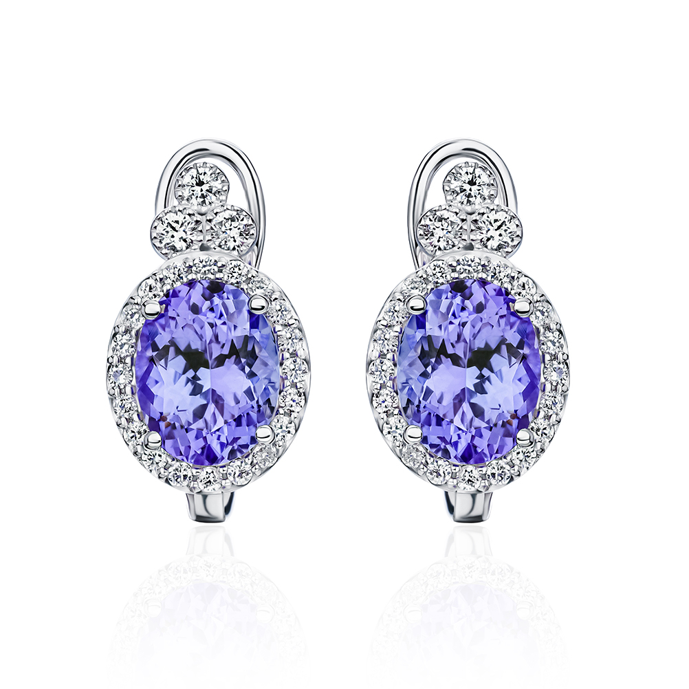 Серьги с танзанитами и бриллиантами из белого золота 585 пробы арт. EM1428-1013